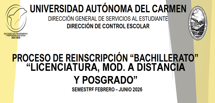 Iniciaron el nuevo ciclo escolar febrero - junio 2026 alrededor de 8 mil 600 estudiantes de los niveles medio superior, superior en las modalidades presencial y a distancia en la Universidad Autónoma del Carmen (UNACAR). En los cuatro campus alumnos de las dos Escuelas Preparatorias y ocho Facultades reiniciaron actividades académicas este 9 de febrero, mismas que concluirán el próximo 19 de junio. En el caso de los posgrados las clases están contempladas del ...