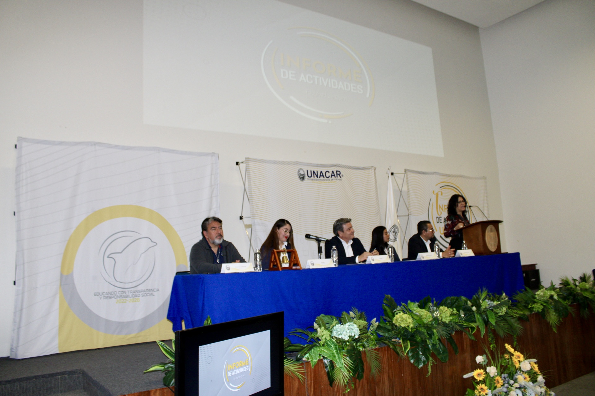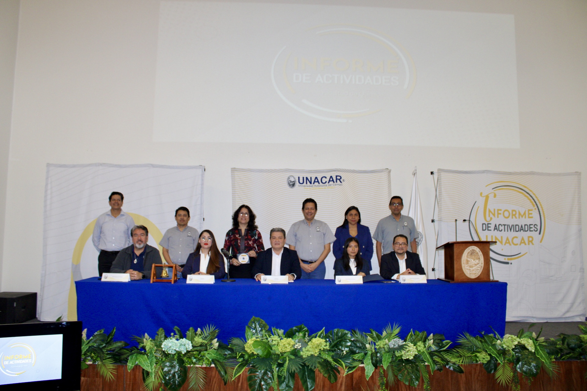 Estuvieron presentes en el acto llevado a cabo en el auditorio Xicalango del Edificio de Vinculación Universitaria, Lic. Javier Zamora Hernández, secretario general; integrantes del H. Consejo Universitario; gestores, profesores – investigadores y estudiantes.