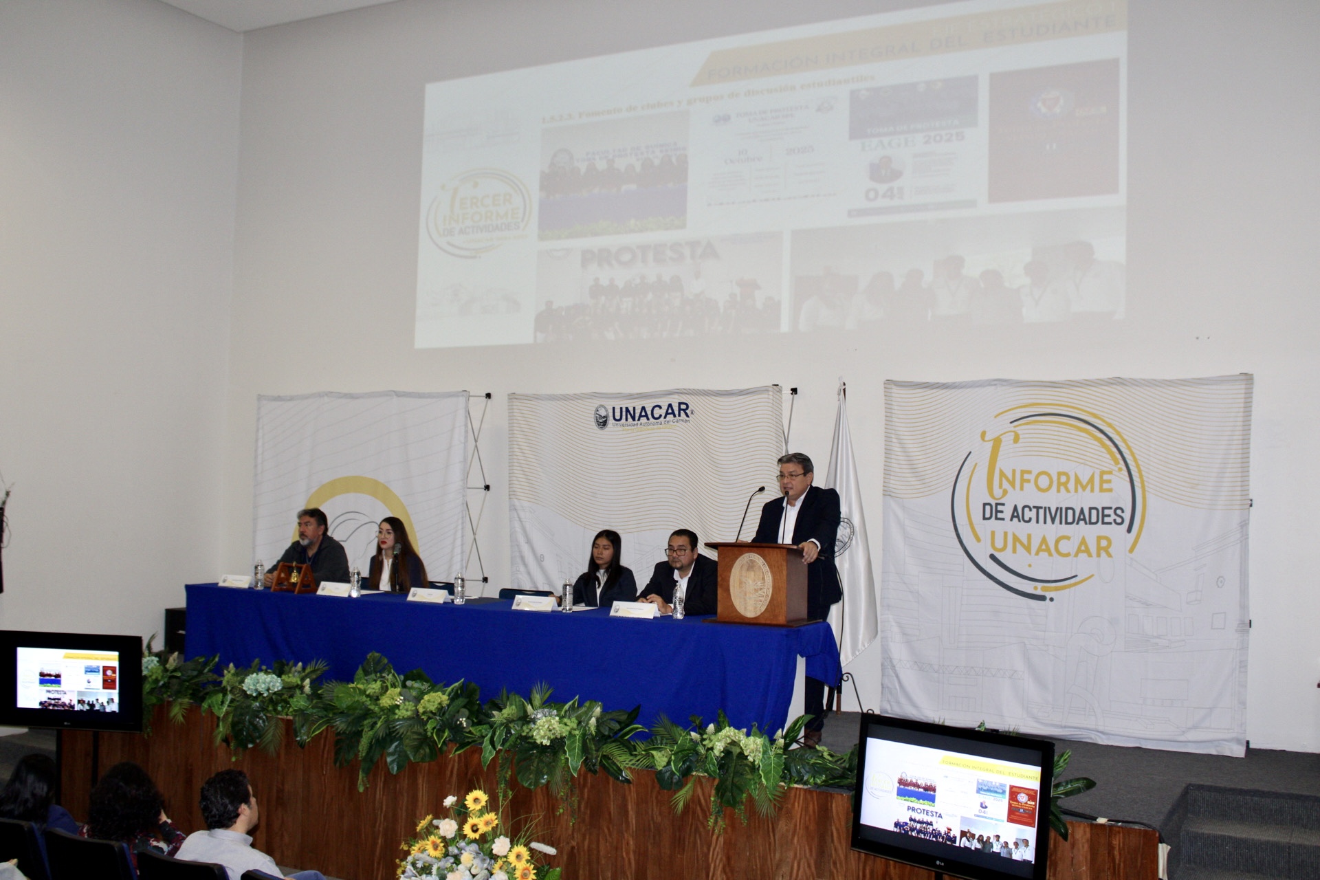Después de la apertura, lectura y aprobación de la orden del día efectuada por la Mtra. Carolin Alejandra Paz López, secretaria Administrativa de la Facultad; presentes Dr. Atl Víctor Córdoba Quiroz y Dr. Daniel de Jesús Montoya Hernández, representantes de profesores ante el Consejo Técnico; y Leilani Elizabeth Carballo Vázquez, representante de los alumnos ante el Consejo Técnico, el Dr. Ruiz Marín presentó un balance detallado con los logros institucionales en programas educativos, investigación, formación integral y gestión organizacional alineados con los indicadores del Plan de Desarrollo Institucional (PDI).