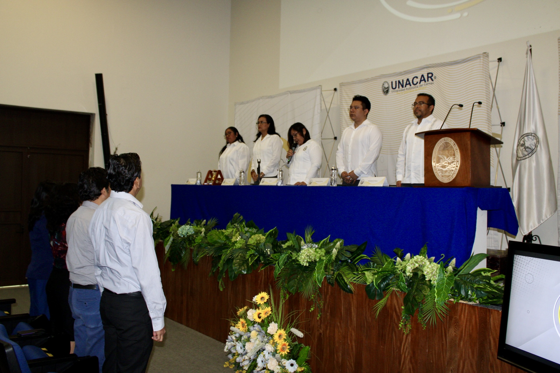 Estuvieron presentes en el acto, llevado a cabo en auditorio Xicalango del Edificio de Vinculación Universitaria, Lic. Javier Zamora Hernández, secretario general; integrantes del H. Consejo Universitario; gestores, profesores – investigadores y estudiantes.