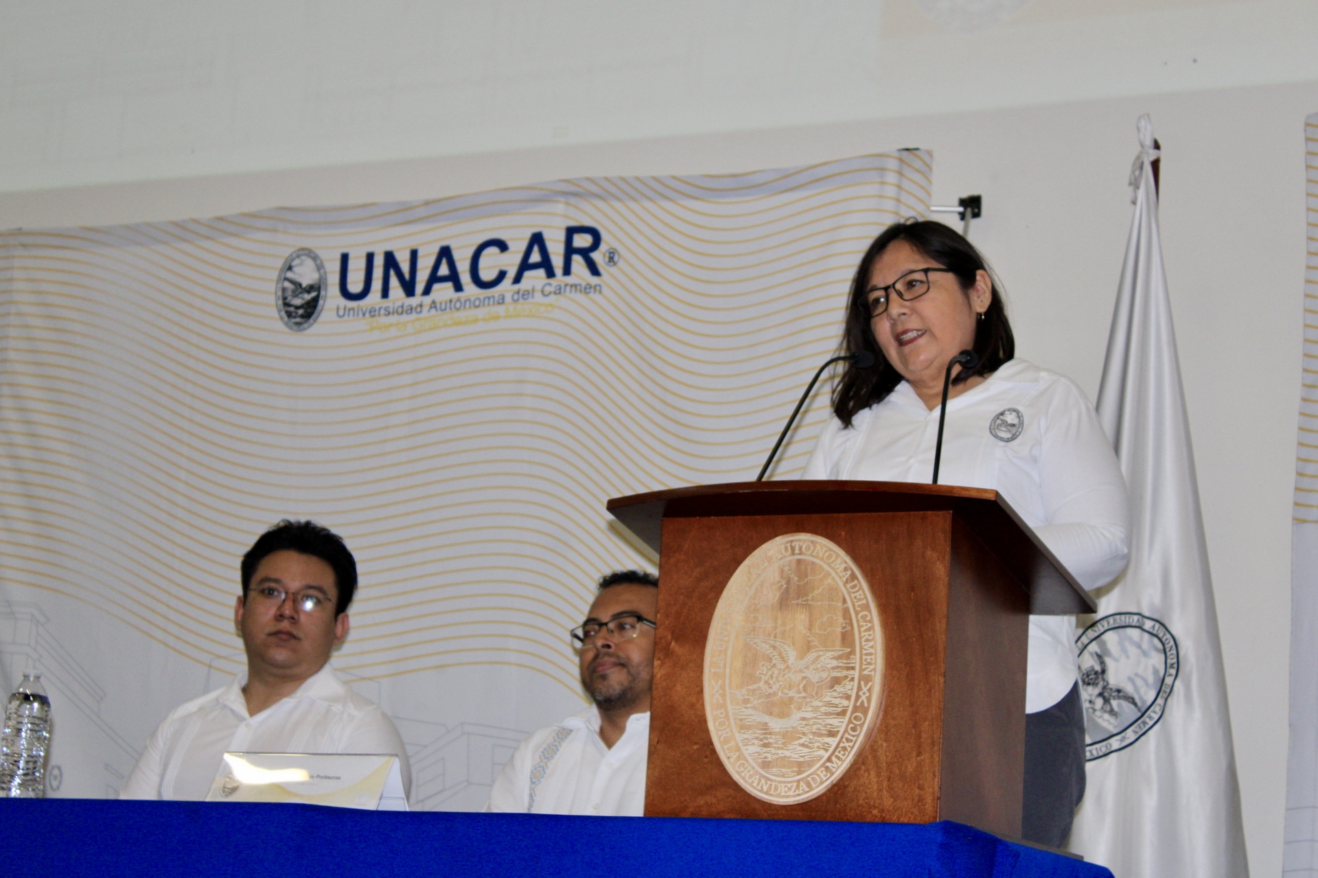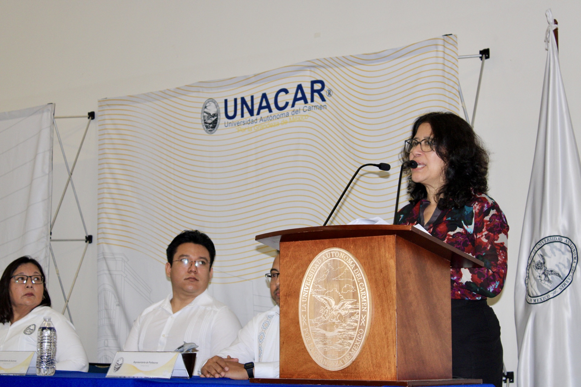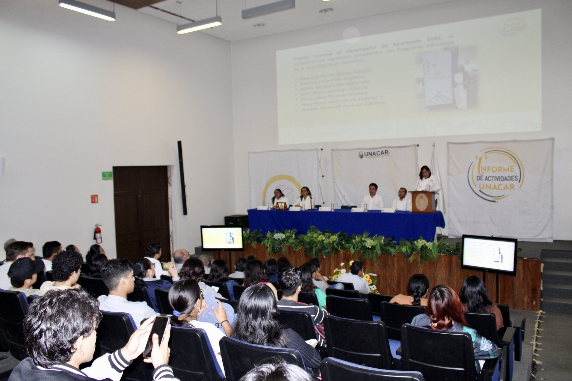 Después de la apertura, lectura y aprobación de la orden del día efectuada por los integrantes del Consejo Técnico: Mtra. Jessica Marisol Reyes Rodríguez, secretaria; Mtra. Claudia Concepción Lira Huchín y Dr. David Gibrán Luna Chi, representantes de los docentes; y David Arturo Chan Hernández, representante de alumnos; la Mtra. García Argáez presentó los logros alcanzados en formación académica, investigación, vinculación social y gestión eficiente, alineados con los cuatro ejes estratégicos y dos transversales del Programa de Desarrollo Institucional (PDI) de la UNACAR.