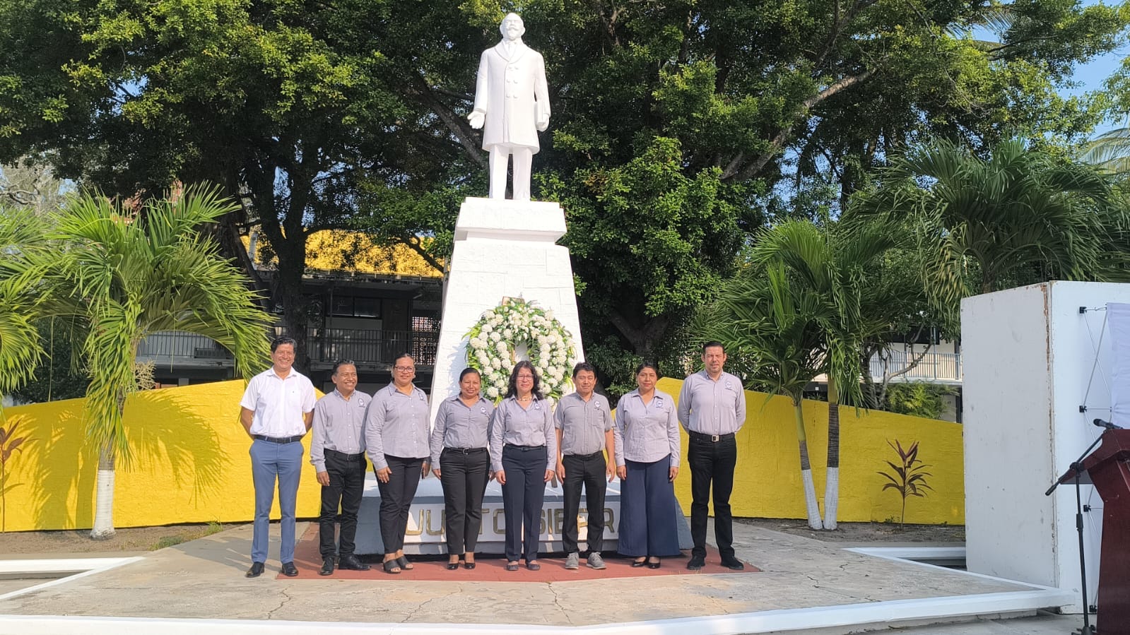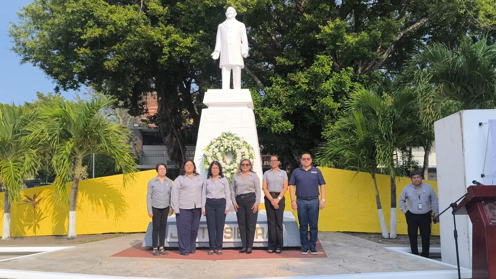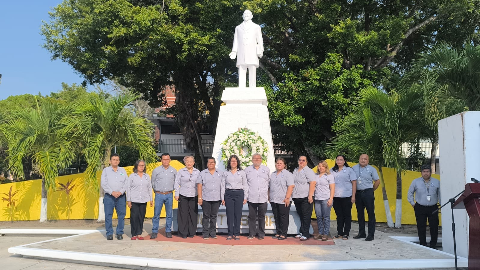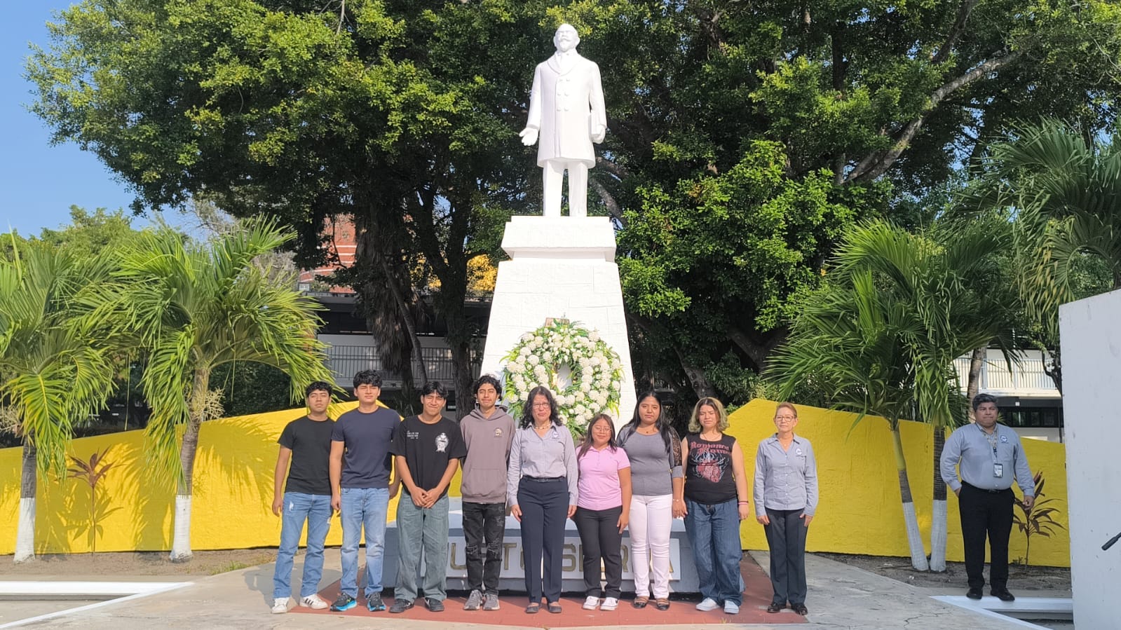 La rectora Laffon Leal junto con integrantes del H. Consejo Universitario y funcionarios universitarios, colocaron una ofrenda floral y montaron guardia de honor en el monumento del ilustre campechano impulsor de la educación en nuestro país.