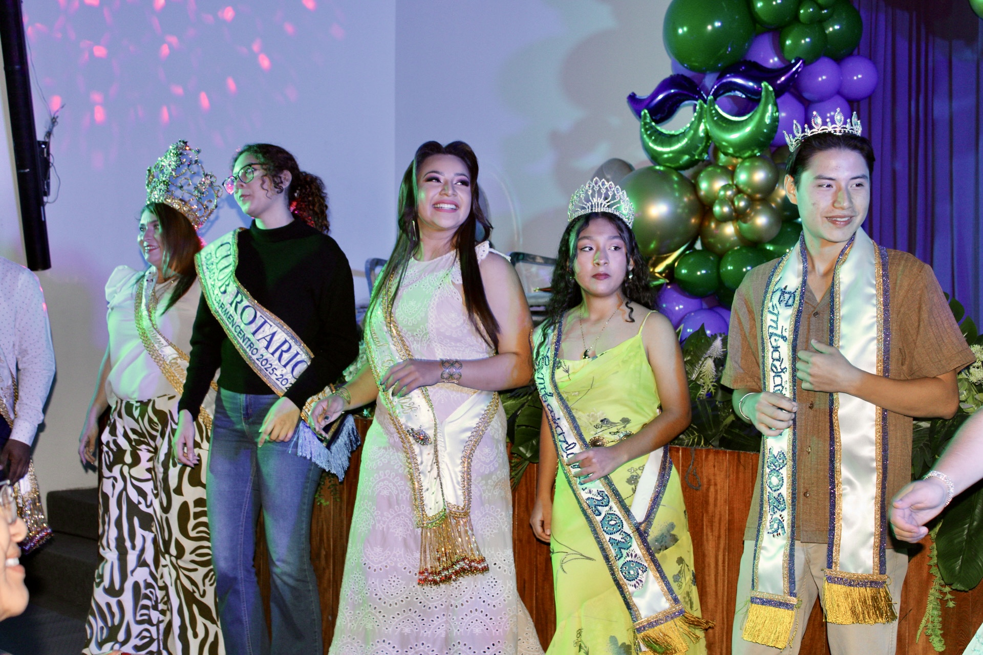 La imposición de banda y beca la realizaron en auditorio Xicalango del Edificio de Vinculación con la presencia de Francisco Manuel Moreno Herrera “Francisco I”, rey universitario 2025; Claudette Isabel Cano, quien en breve será coronada como reina del Carnaval Carmen 2026; Ximena Hannay Martínez González y Ricardo Isaí Cabrera, reyes del CETMAR No. 29; Angélica Iraniks Cruz Ojeda, Embajadora del Club Rotario Carmen Centro; Catherine Alexandra Cruz Salías “Cathy I” y Fredy del Carmen Ortiz Euan “Fred I”, reyes del DIF Carmen; y Jonatán del Jesús Trejo Méndez “Joni I”, rey COMDIS.