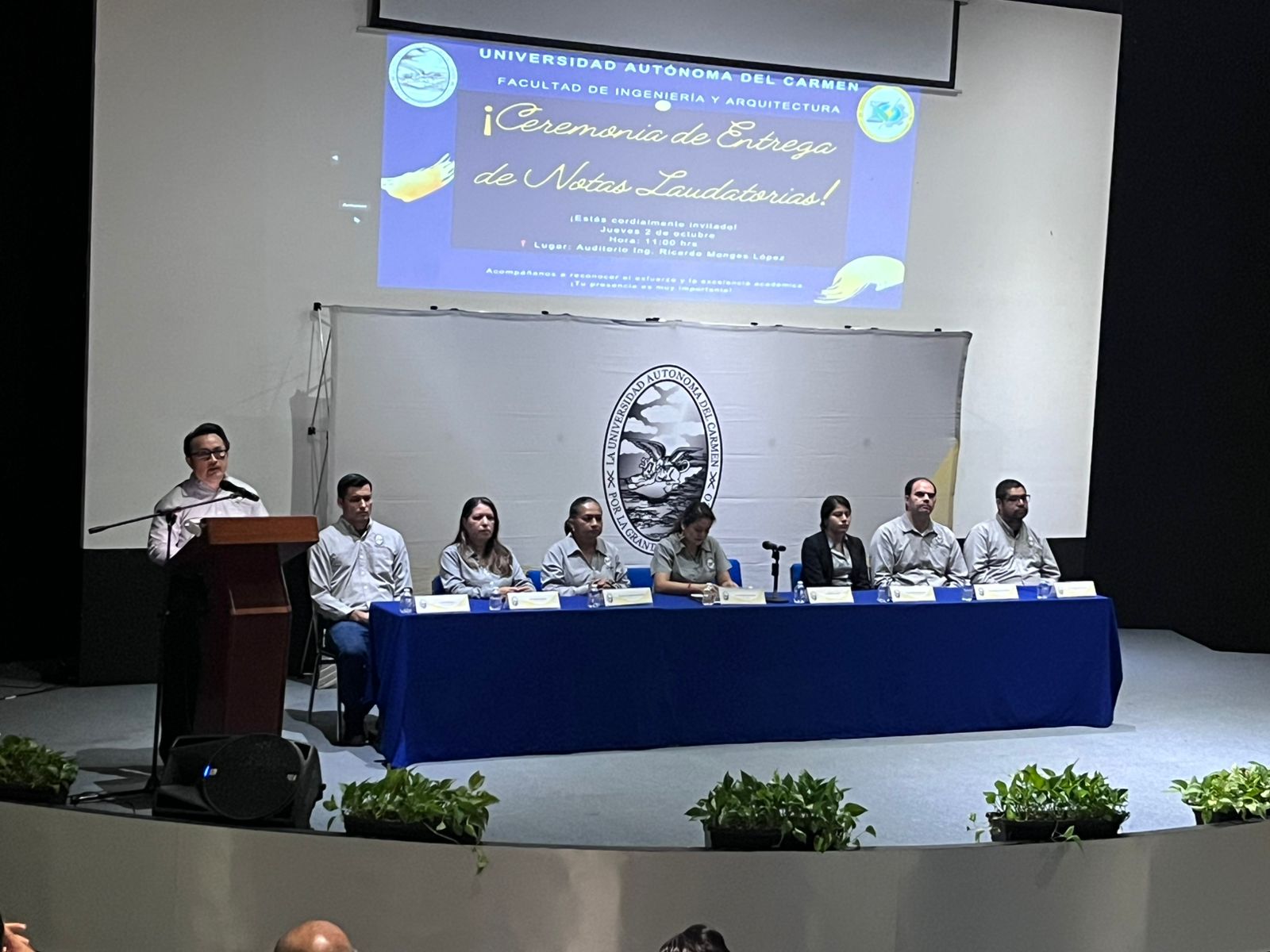 Un total de 84 estudiantes de los seis programas educativos de la Facultad de Ingeniería y Arquitectura (FIyA) de la UNACAR recibieron reconocimientos por haber obtenido los mejores promedios en una emotiva ceremonia efectuada el pasado 2 de octubre en el Auditorio “Ing. Ricardo Monges López” del Campus III.
