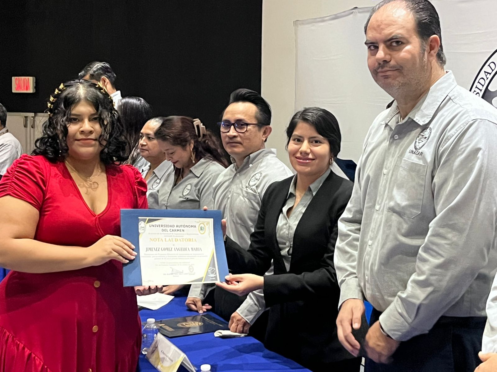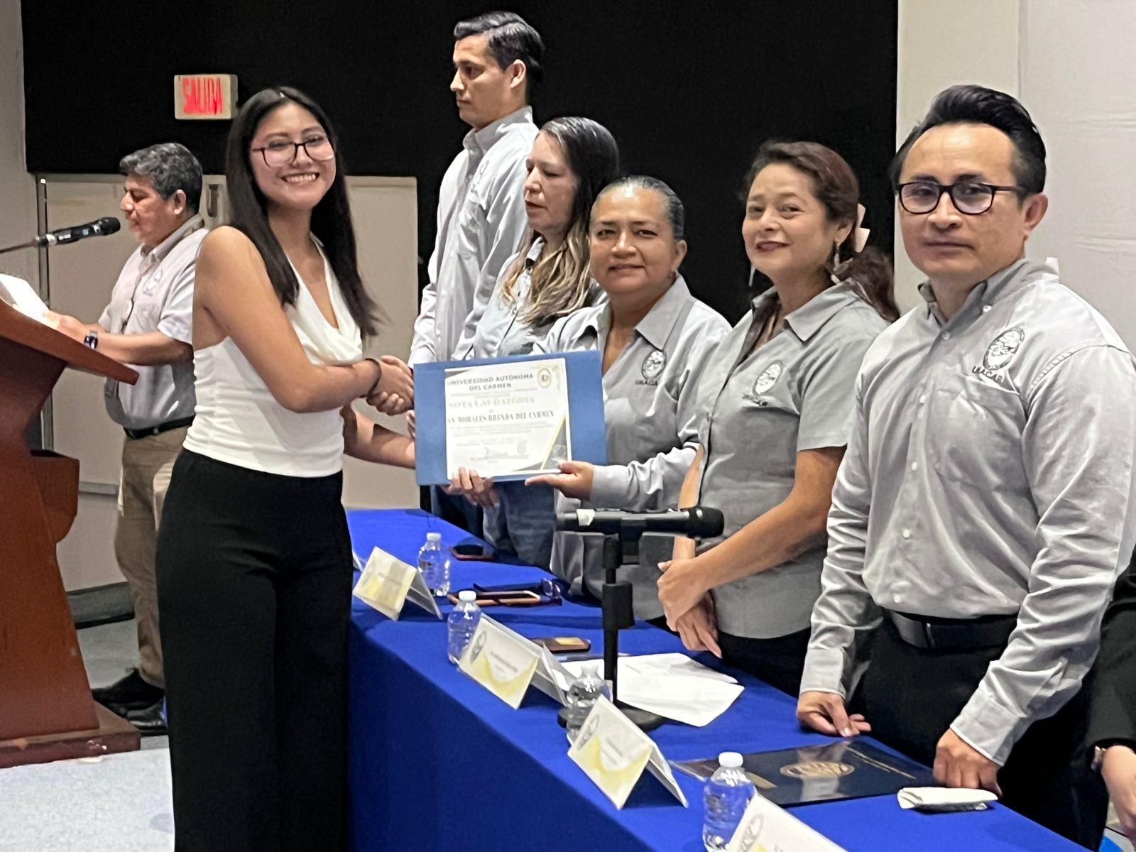 Además, se reconocieron a Renata Delgado Michel, Cecilia del Carmen González Reyes, Christa de los Ángeles Hernández Zavala, Christian Iván Hoil Pérez y Andrea Argudin Baqueiro, cinco estudiantes que fueron becados por la American Bureau of Shipping (ABS).