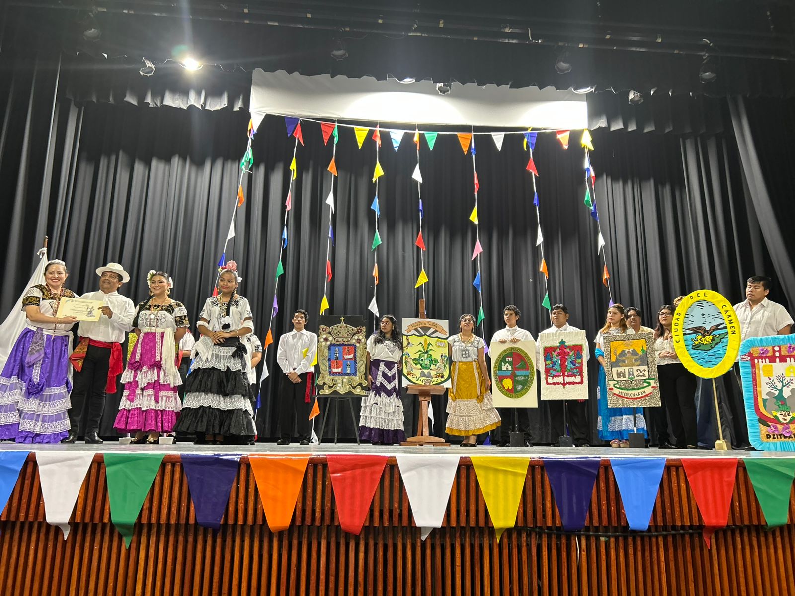 Además, alumnos de la Licenciatura en Comunicación y Gestión Cultural (LCYGC) y de la Maestría en Innovación y Prácticas Educativas expusieron las características de los escudos de algunos de los 13 municipios: Calakmul, Calkiní, Campeche, Candelaria, Carmen, Champotón, Dzitbalché, Escárcega, Hecelchakán, Hopelchén, Palizada, Seybaplaya y Tenabo.