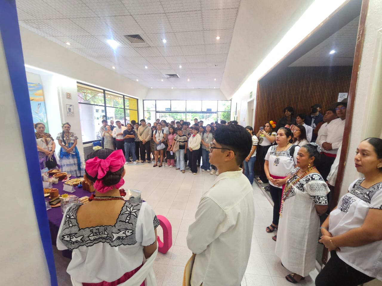 El Aula Magna fue el espacio donde se mostró la rica herencia cultural de nuestra región y en donde alumnas de la Licenciatura en Lengua Inglesa, ataviadas con el atuendo característico campechano, explicaron cada uno de los platillos, dulces y bebidas que se prepararan y consumen en la entidad.