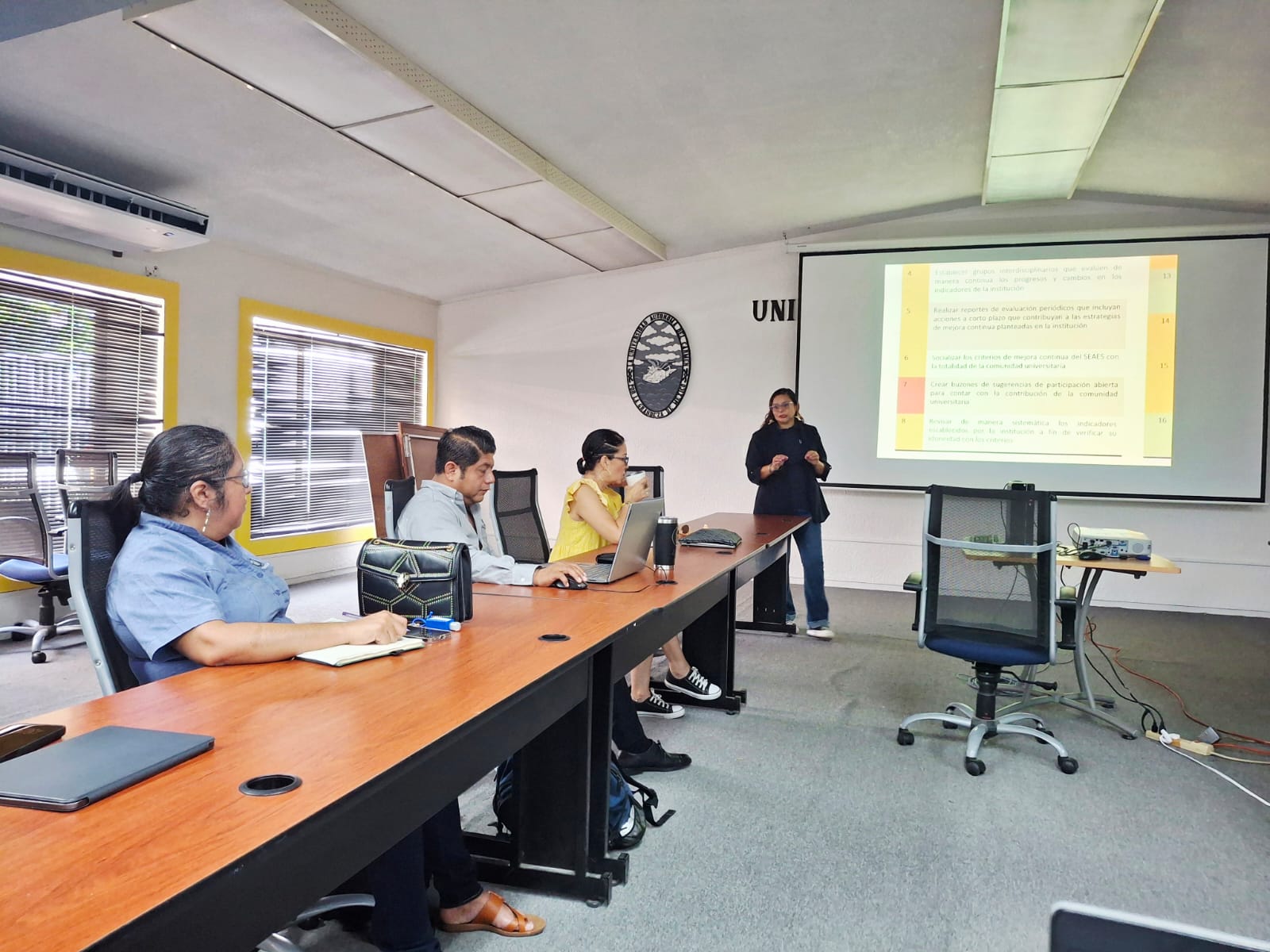 La sesión fue dirigida por la Dra. Heidi Angélica Salinas Padilla, secretaria Académica; y la Lic. Esther Sarai Quintana Chávez, jefa de la Unidad de Evaluación y Acreditación Institucional; quienes destacaron la importancia del trabajo transversal y colegiado para garantizar la excelencia educativa de la Universidad.