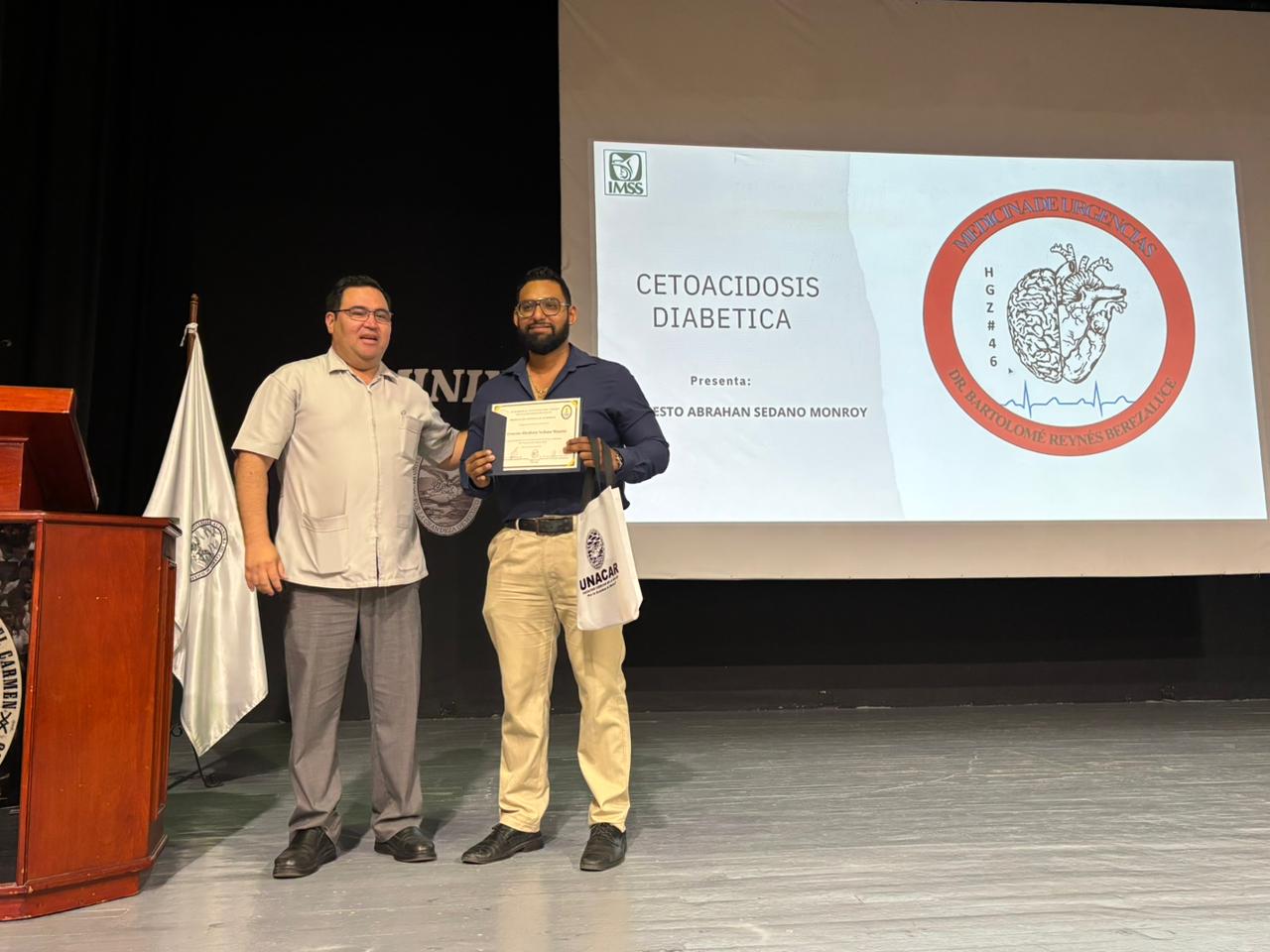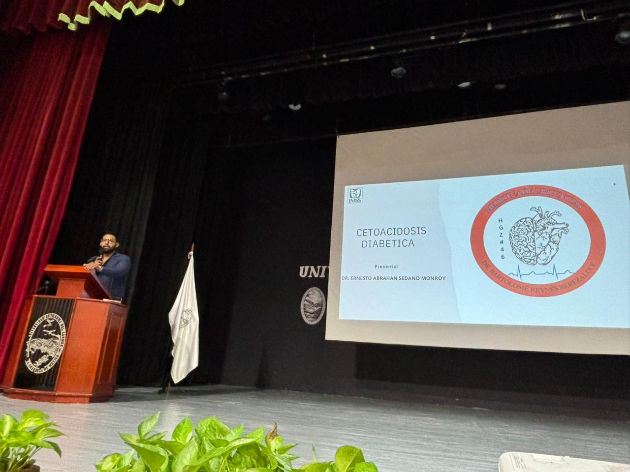 La jornada continuó con la participación del Dr. Ernesto Abrahán Sedano Monroy, urgenciólogo, quien abordó el tema “Cetoacidosis diabética”, y concluyó con la conferencia “De la ficción a la vocación” del Dr. Mario Díaz Arjona, urgenciólogo, quien compartió una reflexión inspiradora sobre el sentido humano y profesional de la medicina.