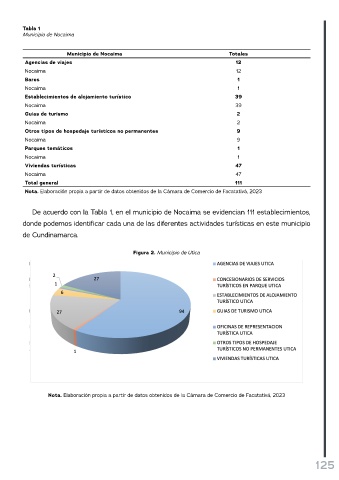 De acuerdo con la Tabla 1, en el municipio de Nocaima se evidencian 111 establecimientos,