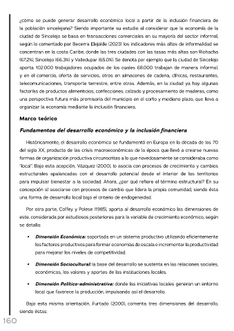 Por otra parte, Coffey y Polese (1985), aporta al desarrollo económico las dimensiones de