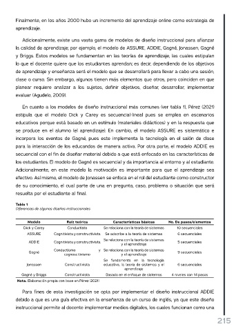 la calidad de aprendizaje; por ejemplo, el modelo de ASSURE, ADDIE, Gagné, Jonassen, Gagné