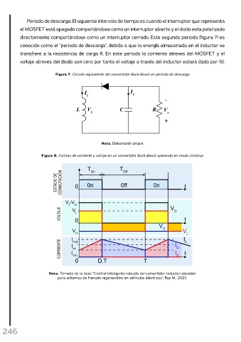 Figura 8. Formas de corriente y voltaje en un convertidor Buck-Boost operando en modo continuo