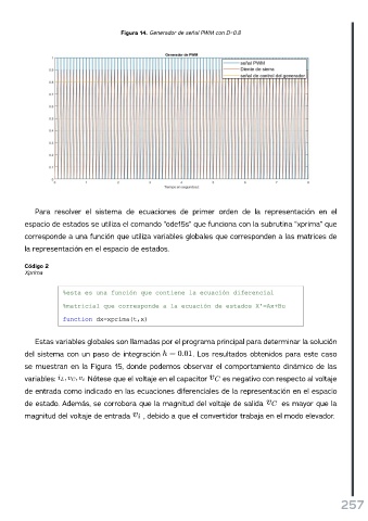 de estado. Además, se corrobora que la magnitud del voltaje de salida es mayor que la