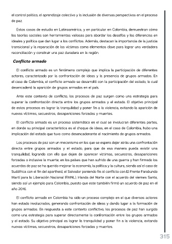 grupos armados. En respuesta a este contexto conflictivo, los procesos de paz han surgido