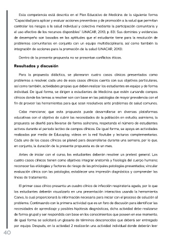 Para la propuesta didáctica, se planearon cuatro casos clínicos presentados como