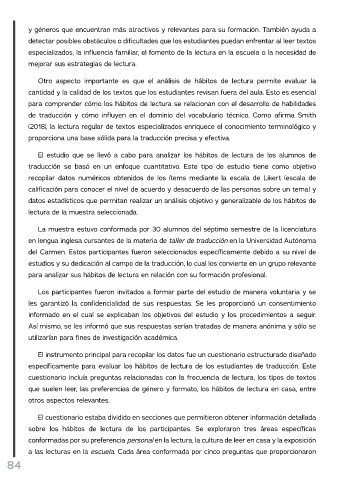 específicamente para evaluar los hábitos de lectura de los estudiantes de traducción. Este