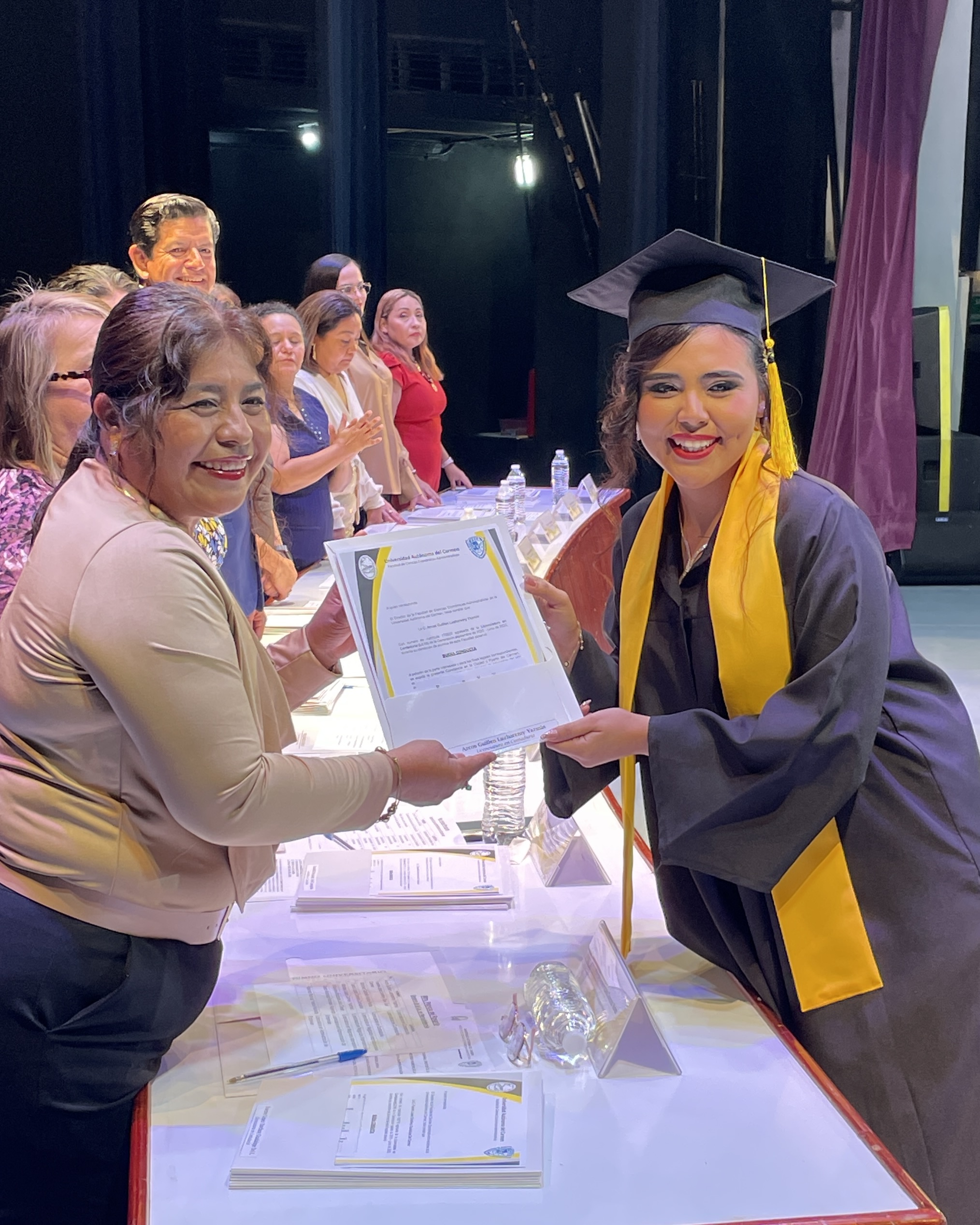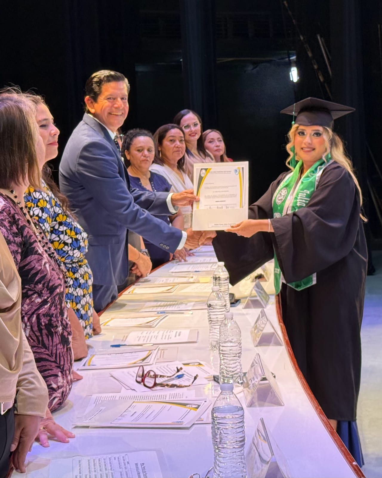 El evento, realizado con un auditorio lleno de familias, docentes y autoridades universitarias, fue presidido por la Dra. Sandra Martha Laffón Leal, rectora de la UNACAR, quien estuvo acompañada por el Mtro. Juan Carlos López Cabañas, director de la FCEA, así como por las gestoras y autoridades académicas de cada programa educativo.