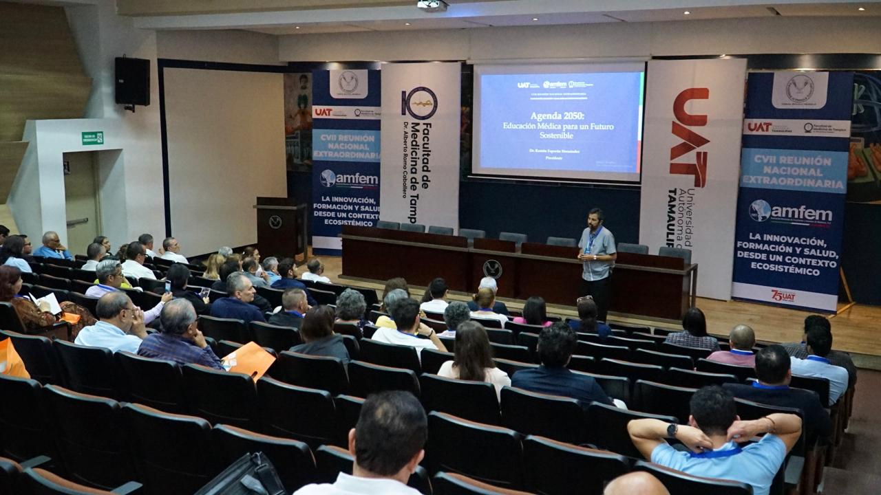 Del 15 al 18 de octubre se llevó a cabo en Tampico, Tamaulipas la 107 Asamblea Nacional Extraordinaria de la AMFEM que agrupa a más de 120 instituciones públicas y privadas del país, siendo sede la Facultad de Medicina “Dr. Alberto Romo Caballero” de la Universidad Autónoma de Tamaulipas, bajo el lema “Innovación, Formación y Salud desde un Contexto Ecosistémico”.