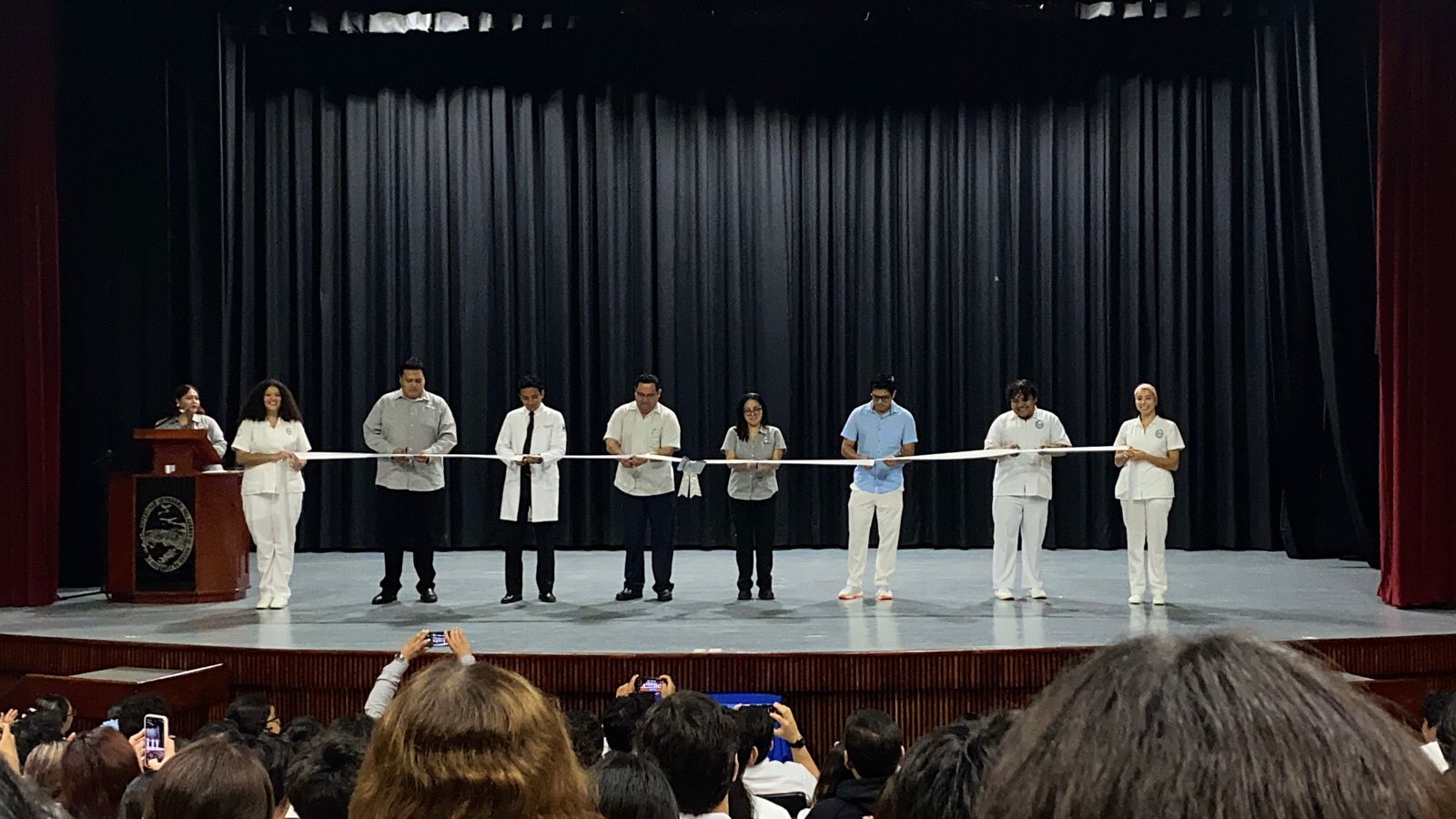 Posteriormente, se llevó a cabo el corte de listón inaugural, encabezado por el Dr. Fuentes Lugo, acompañado de la Dra. Alba Guadalupe Hernández García, gestora del programa académico; el Dr. Víctor Manuel Grapain Castillejos, invitado especial y egresado de la primera generación de la Licenciatura en Medicina; el Dr. Sergio Evanny Castellanos Zárate, representante del cuerpo docente; el Dr. Nicolás Ramos Leyva, representante de los médicos supervisores de campo clínico; y el estudiante José Felipe Vargas de la Cruz, quien ostenta el mejor promedio de la generación 2023.