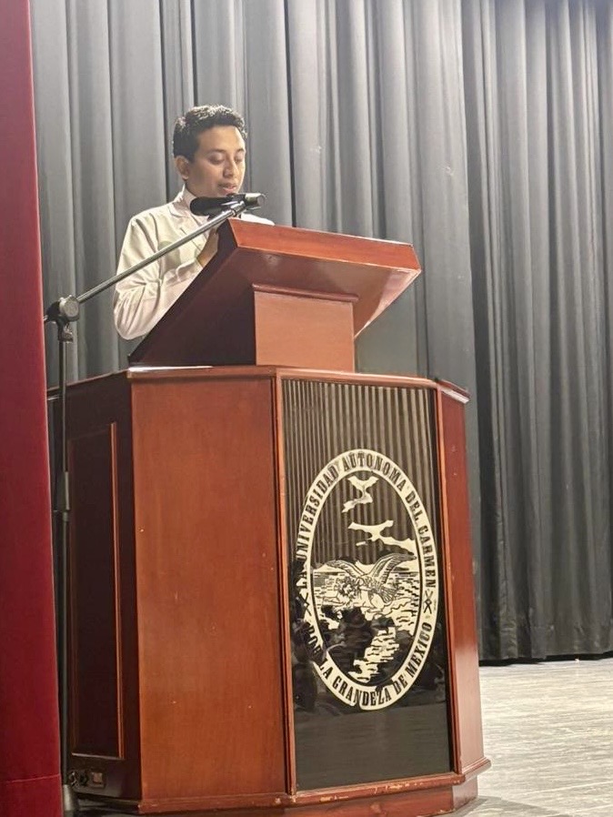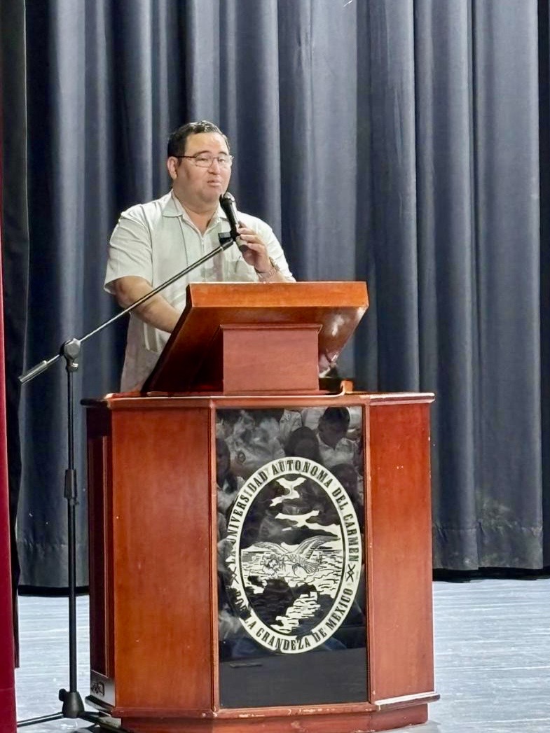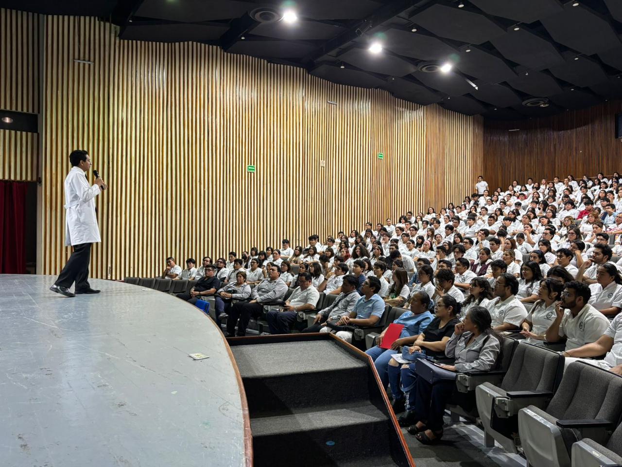 La primera conferencia magistral se tituló “Entre guardias y sueños: el rostro humano de la medicina”, impartida por el Dr. Víctor Manuel Grapain Castillejos, médico especialista en Pediatría y orgullo egresado de la primera generación de la Licenciatura en Medicina de la UNACAR.