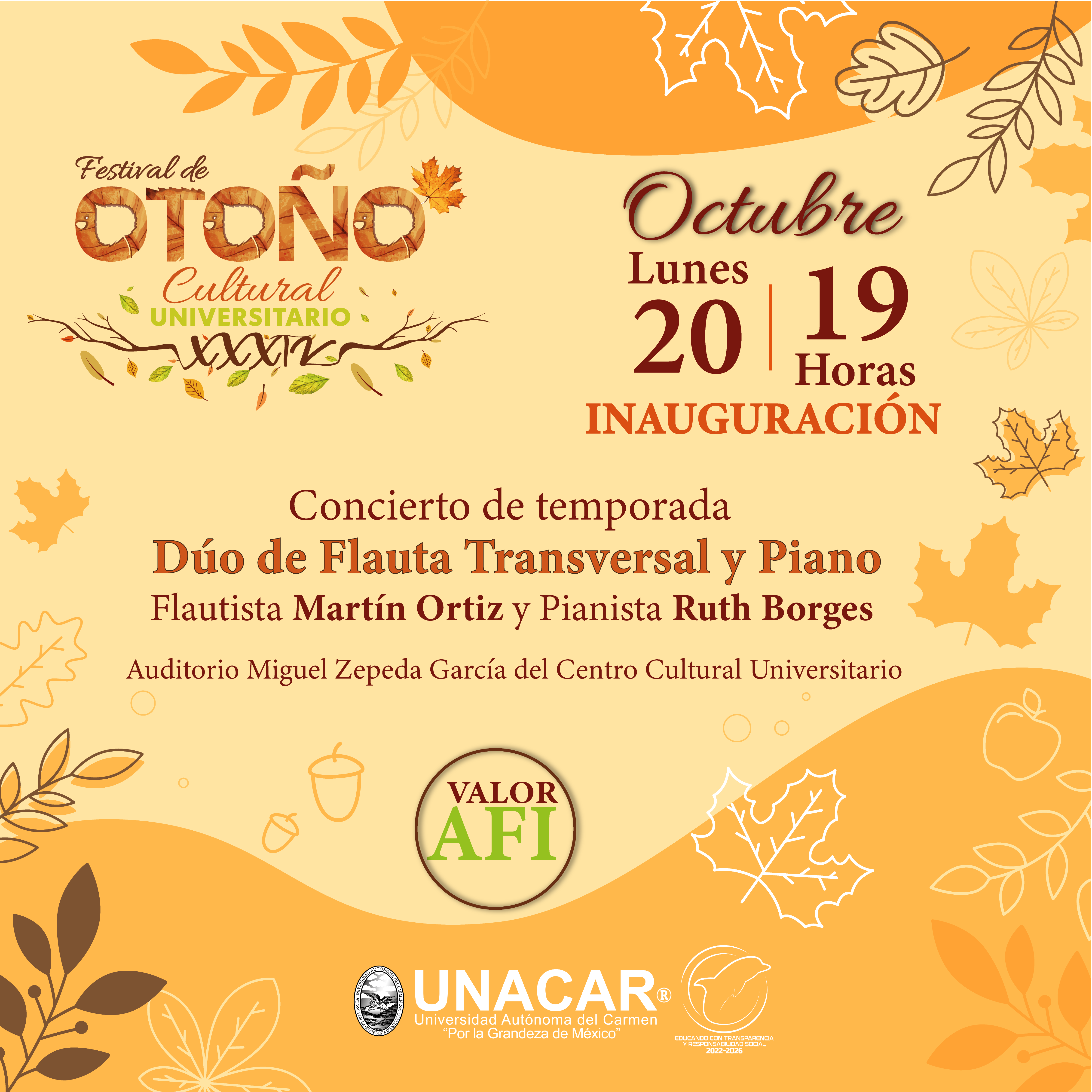 La inauguración será este lunes 20 a las 19:00 horas en el Centro Cultural Universitario (CCU) con el concierto de temporada que ofrecerá el dúo de flauta transversal y piano conformado por Martín Ortiz Gurami y Ruth Borges.