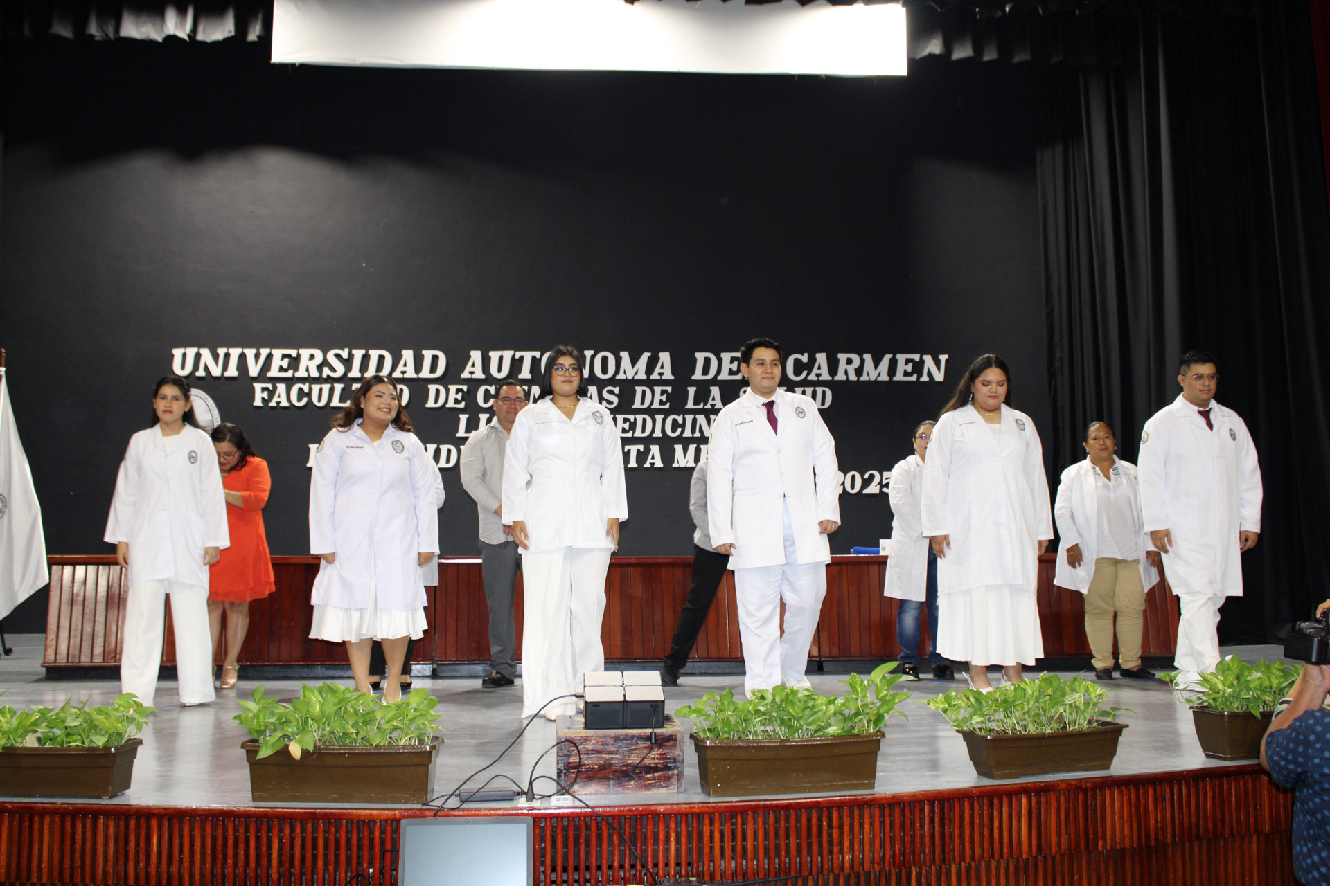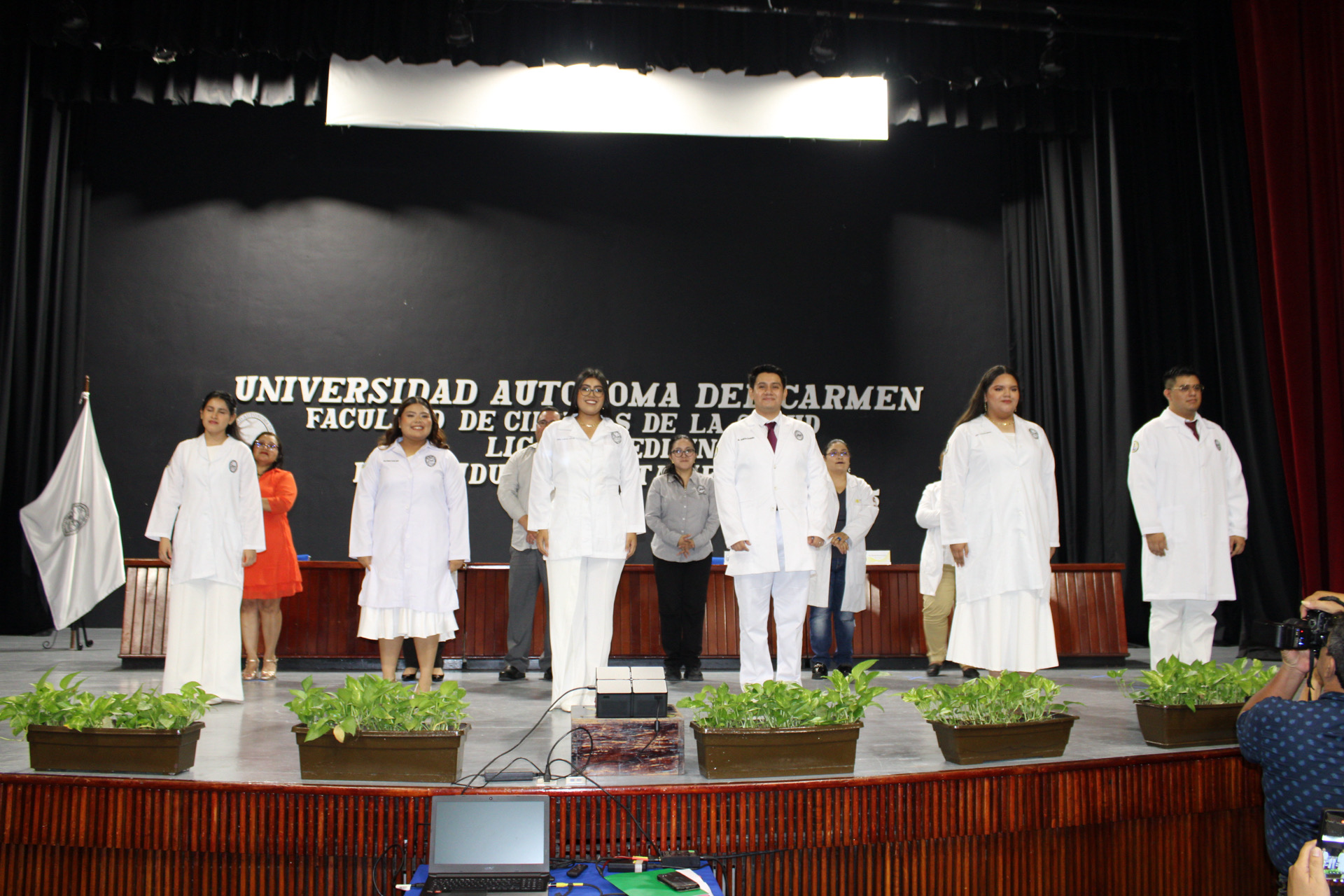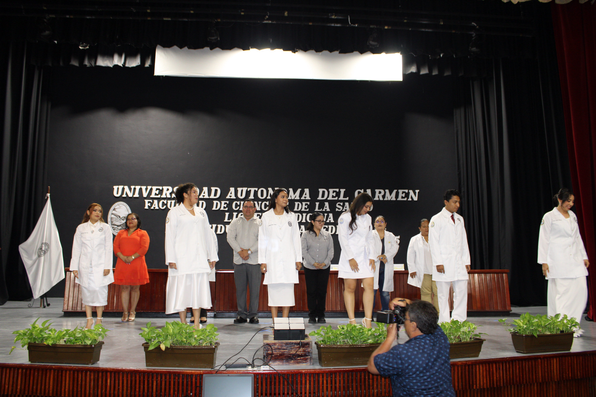 Docentes de la Licenciatura en Medicina de la Facultad Ciencias de la Salud (FCS) de la Universidad Autónoma del Carmen (UNACAR) impusieron batas médicas a 61 estudiantes de quinto semestre de este programa educativo.