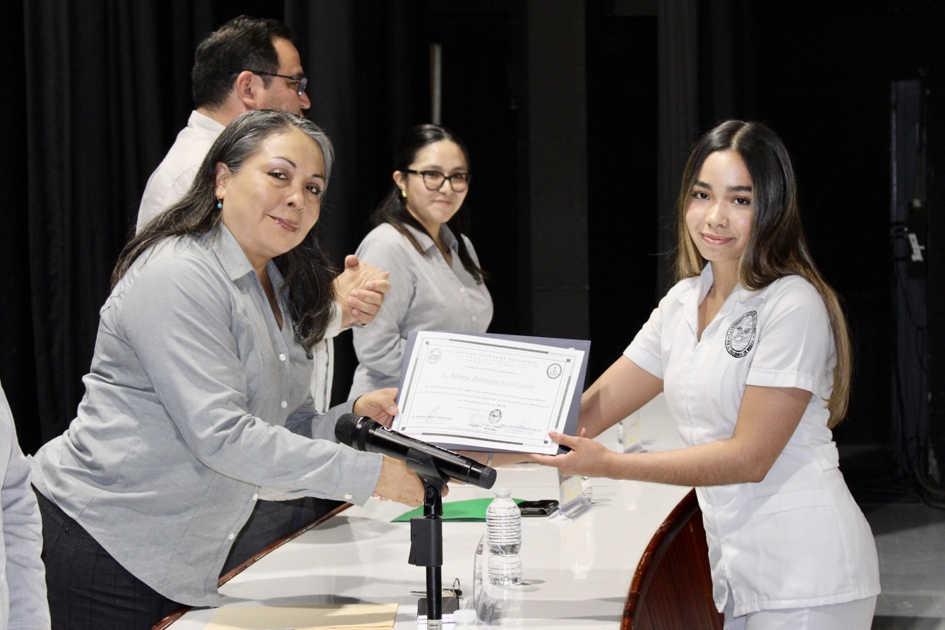 Fueron reconocidos los tres mejores promedios: Francisco del Jesús Zavala Lara, Tamara Monserrat Gómez Jiménez y Ena Laura Abreu Zuluaga, del tercer semestre; José Felipe Vargas De la Cruz, Gerardo Israel Rodríguez Canepa y Mariela Alexandra Casanova Gómez, de quinto semestre; y Diego Jaziel Quintal Altamirano, Danna Sofía Tiquet Martínez y Jimena Valentina Talango De la Cruz de sétimo semestre.