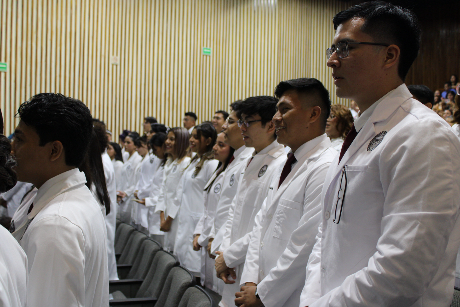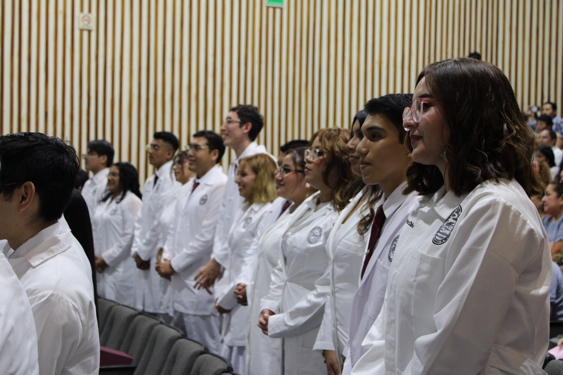 El Dr. Alberto Daniel Fuentes Lugo, director de la FCS, recordó que históricamente, el blanco reemplazó al negro, el cual estaba asociado al luto y la fragilidad de la vida, y a inicios del siglo XX se empezó a usar como símbolo de ciencia, pureza, confianza, luz y esperanza. Afirmó que la tradición moderna nació en 1993 con la White Coat Ceremony en la Universidad de Columbia, extendiéndose globalmente como rito de paso que une técnica y humanismo.