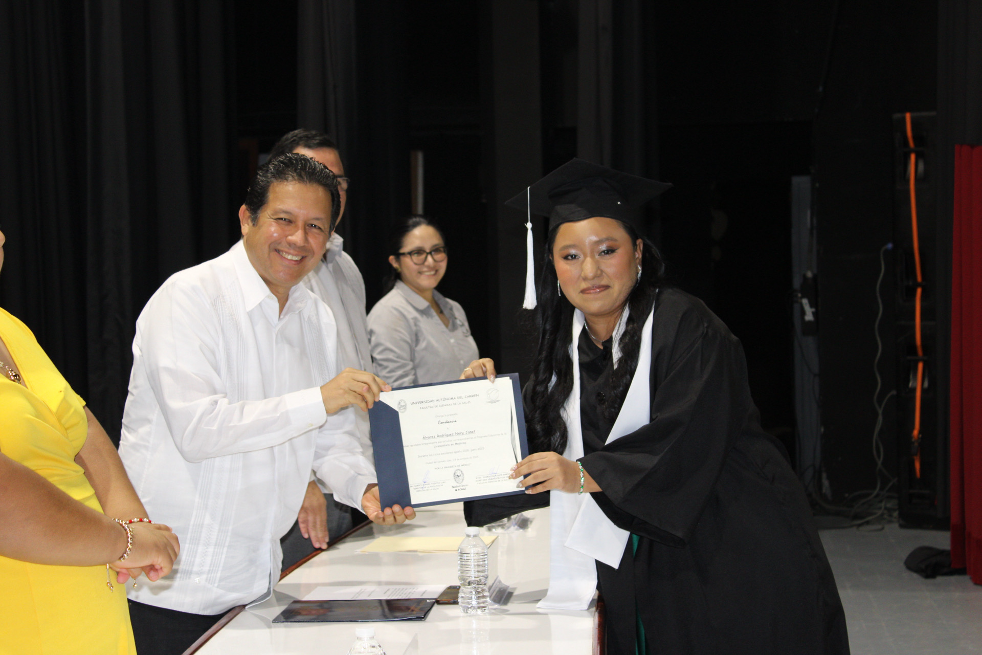 Estuvieron presentes Dra. Diana Monserrat Rodríguez Cruz, jefa del Distrito de Salud para el Bienestar No. 3; Dr. Adalberto Jiménez Santos, director del Hospital General de Pemex de Ciudad del Carmen; Dra. Larissa Paola Luna Martínez, jefa de Enseñanza e Investigación del Hospital “Dra. María del Socorro Quiroga Aguilar”; Dra. Andrea Valentina del Jesús Lares Méndez, en representación del Dr. Ernesto Loeza Frías, director de la Clínica con Hospital “C” del ISSSTE; Mtra. Yasmín Escalante García, secretaria administrativa de la Facultad; Mtra. Leydi Sofía Javier Rivera, gestora de la Licenciatura en Fisioterapia: docentes y familiares de los graduados.