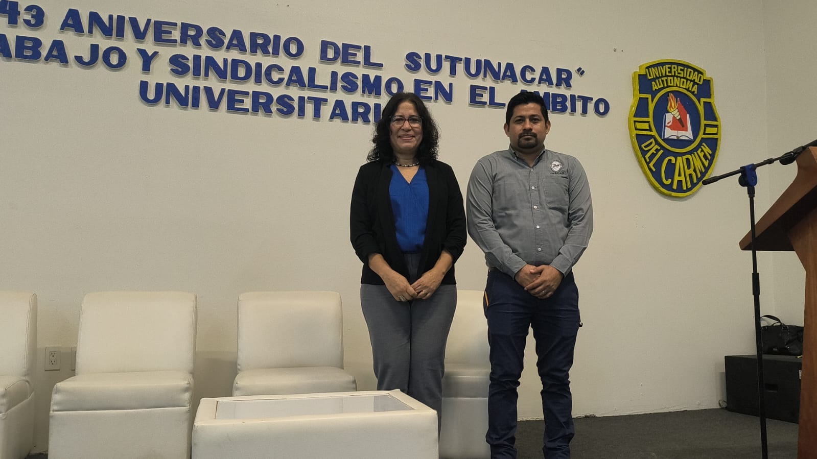Autoridades universitarias participaron este 27 de febrero en las distintas actividades organizadas en el marco del cuadragésimo tercer aniversario del Sindicato Único de Trabajadores de la Universidad Autónoma del Carmen (SUTUNACAR). Este 27 de febrero en el auditorio Xicalango del Edificio de Vinculación se desarrolló la Jornada de análisis sobre el trabajo y Sindicalismo Universitario donde estuvieron presentes representantes de la Confederació...