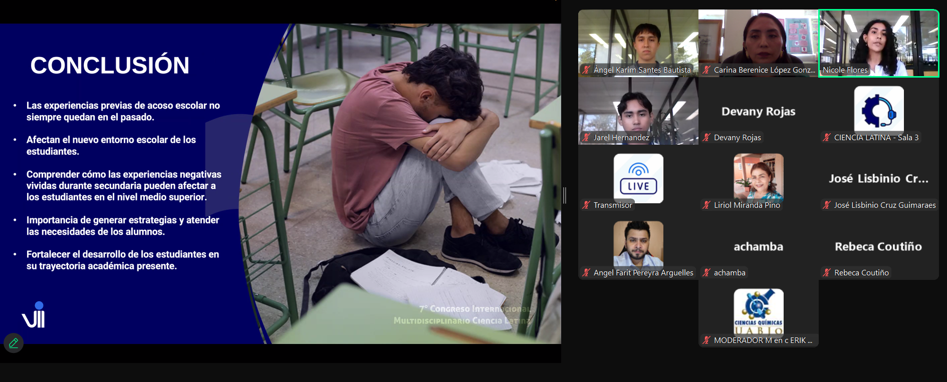 Durante este importante encuentro académico, presentaron la ponencia internacional titulada: “Efectos del Acoso Escolar Experimentado Durante la Secundaria en Estudiantes de Preparatoria”, abordando una temática de alto impacto social con rigor metodológico y compromiso académico.