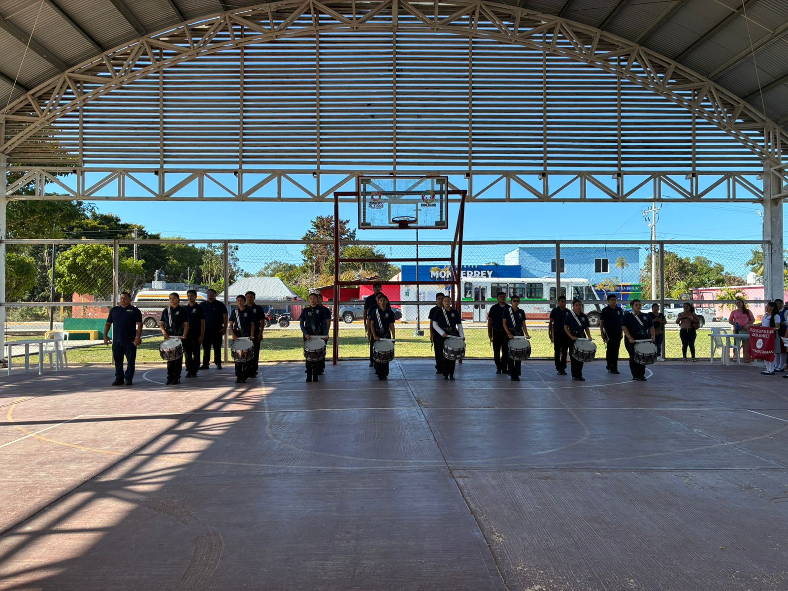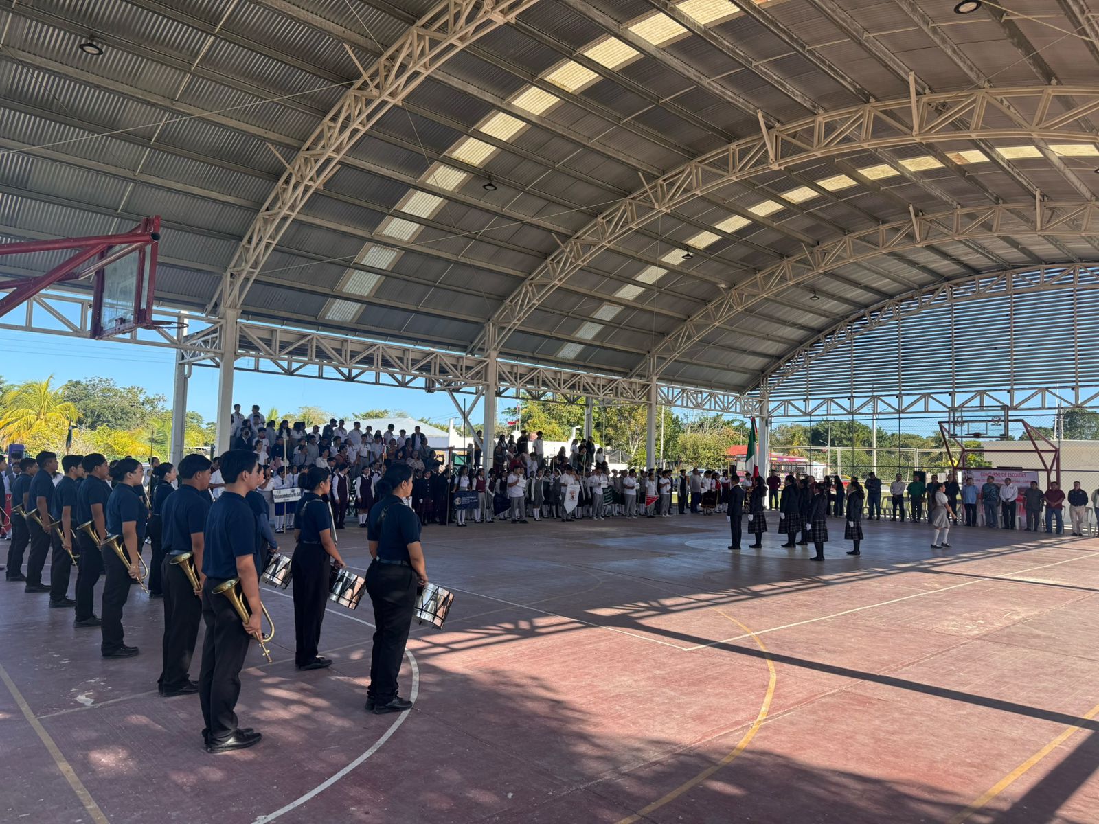 La banda inició su agenda de servicio comunitario en la villa de Sabancuy, donde gestionó de manera interinstitucional la solemnidad de los actos protocolarios de la zona escolar 028W.