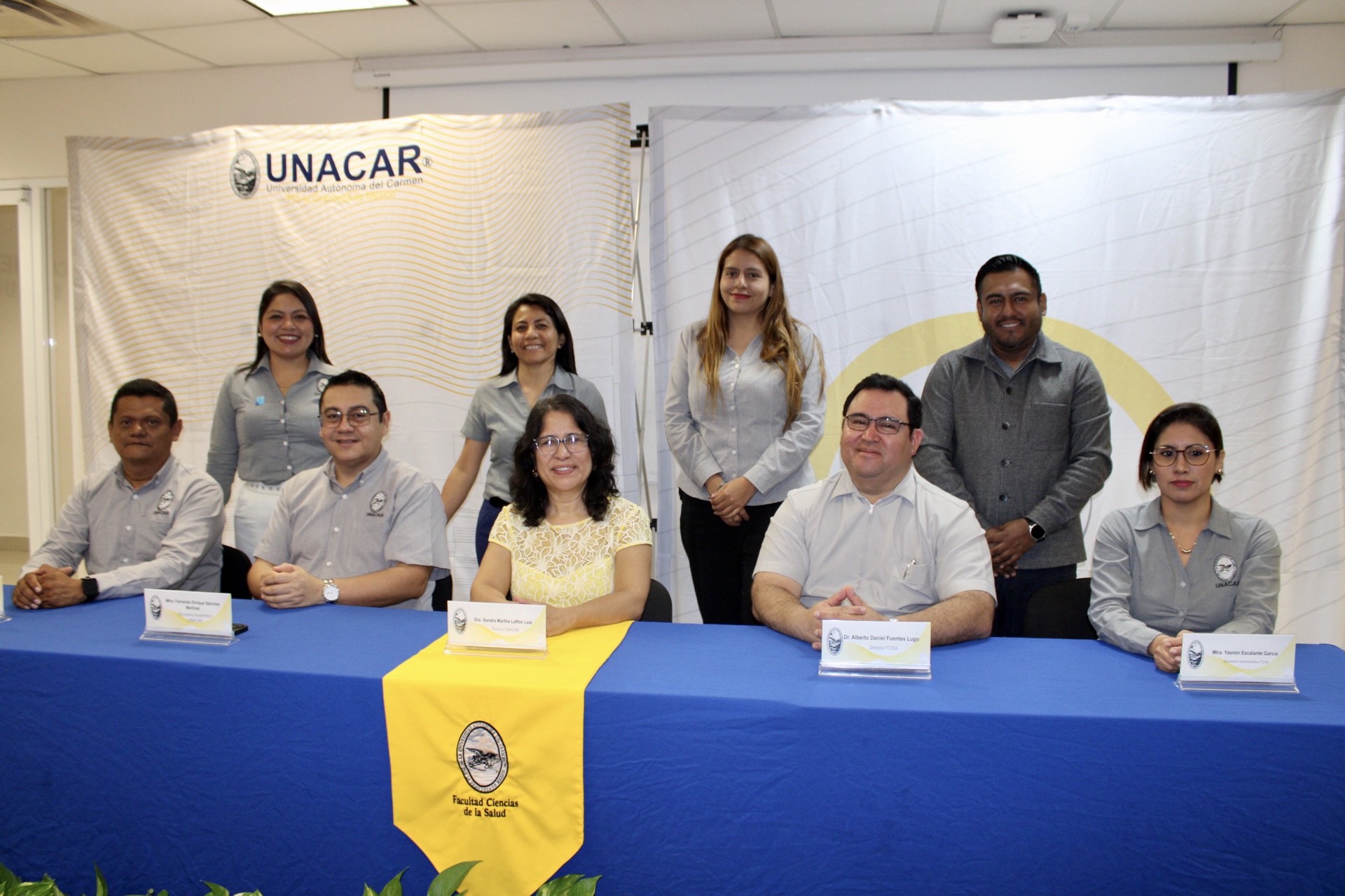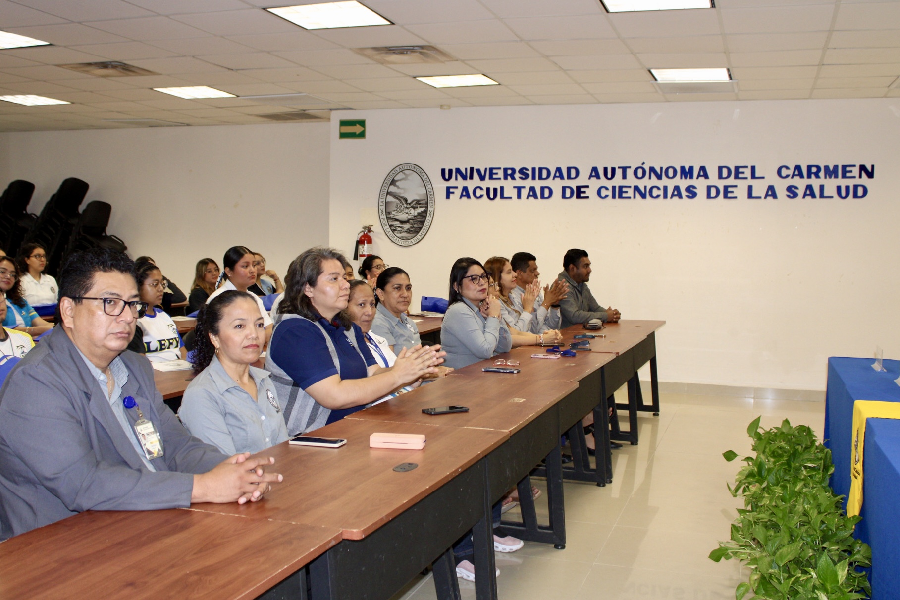 Asistieron al acto realizado en el sala 257 el Dr. Fernando Enrique Sánchez Martínez, secretario académico; Dr. Alberto Daniel Fuentes Lugo y Mtra. Yasmin Escalante García, director y secretaria administrativa de la FCS, respectivamente; Dr. José Jesús Matos Ceballos, gestor de LEFyD; Mtra. Airam Anerim Guillén Suárez, gestora de Nutrición; Mtra. Shiray González Pérez, gestora de Psicología; Mtra. Leidy Sofia Javier Rivera, gestora de Fisioterapia; y Dr. Juan Yovani Telumbre Terrero, gestor de Enfermería.