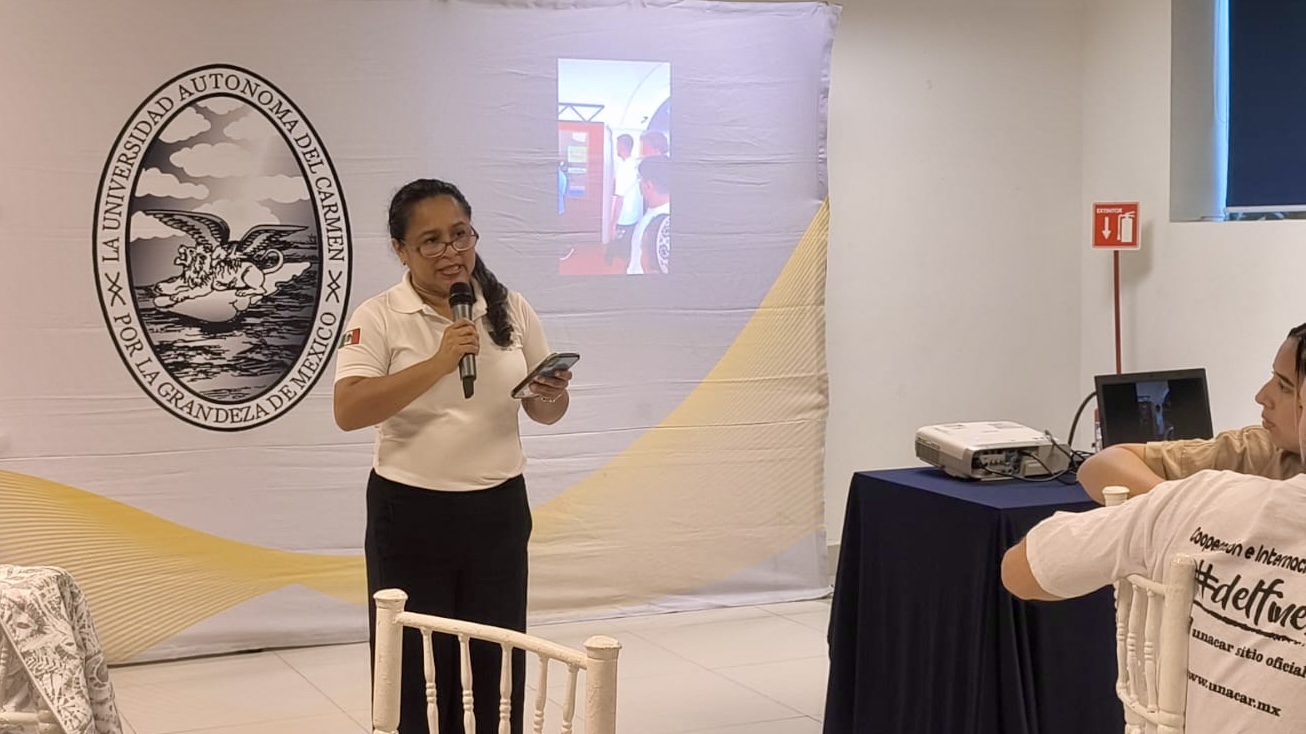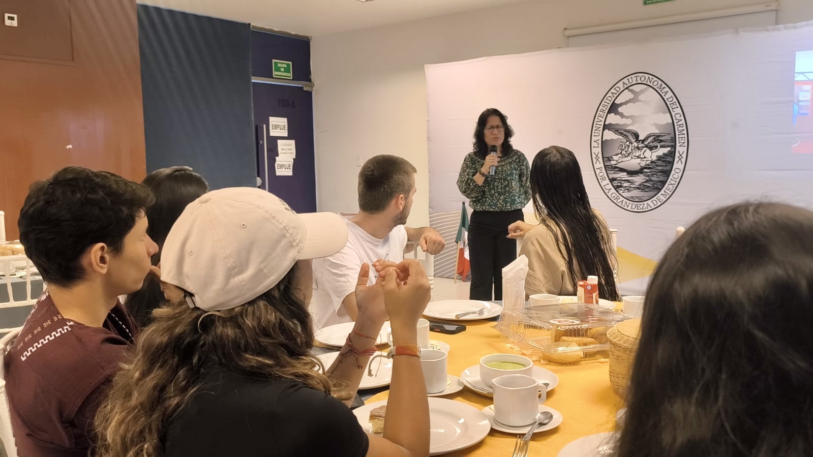 Durante su mensaje de bienvenida, la Mtra. Yazmin del Carmen Pérez Nares, jefa de Oficina de Cooperación e Internacionalización (OCI), agradeció la presencia de los estudiantes visitantes e hizo un recuento de las actividades de integración y dinámicas en las que han participado desde su llegada, para sentirse parte de la UNACAR y conocieran la cultura mexicana.