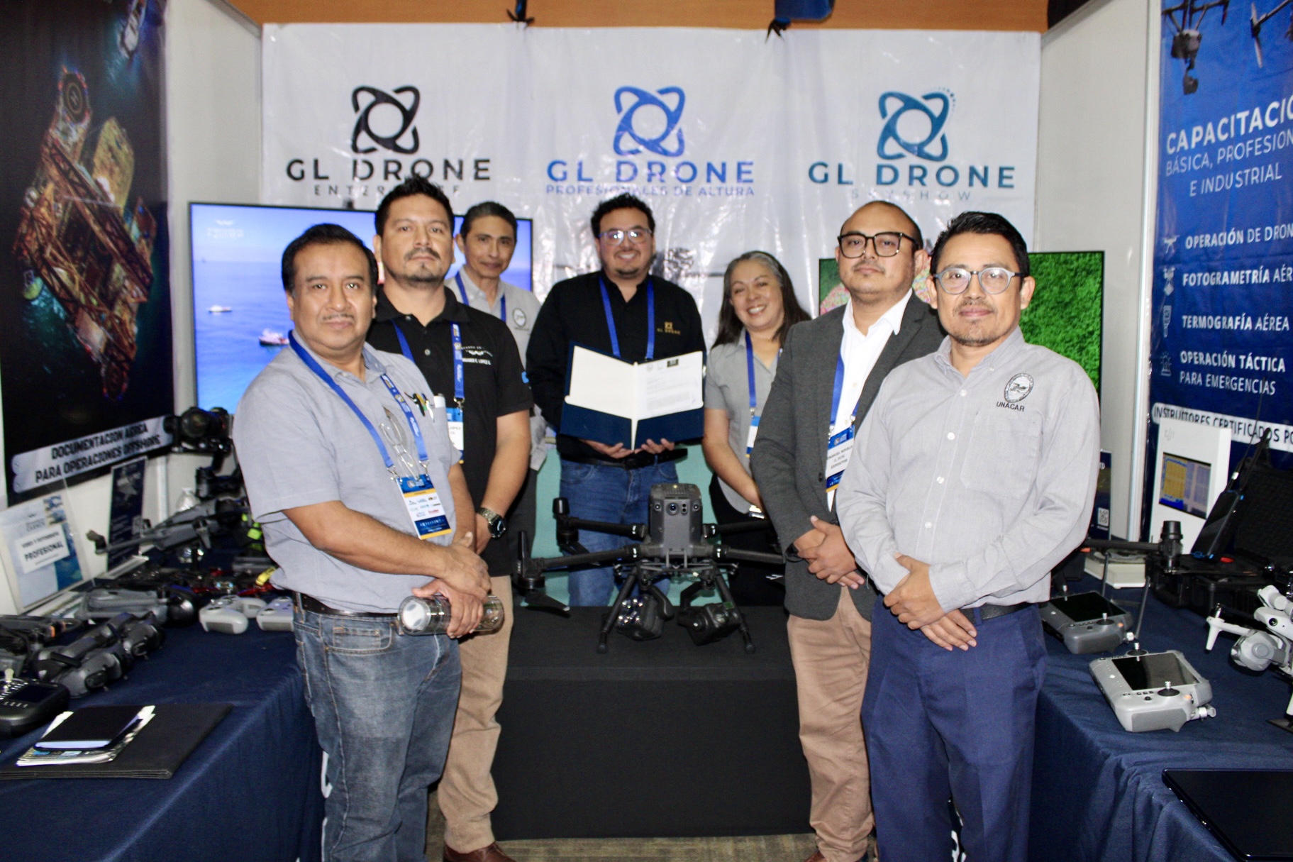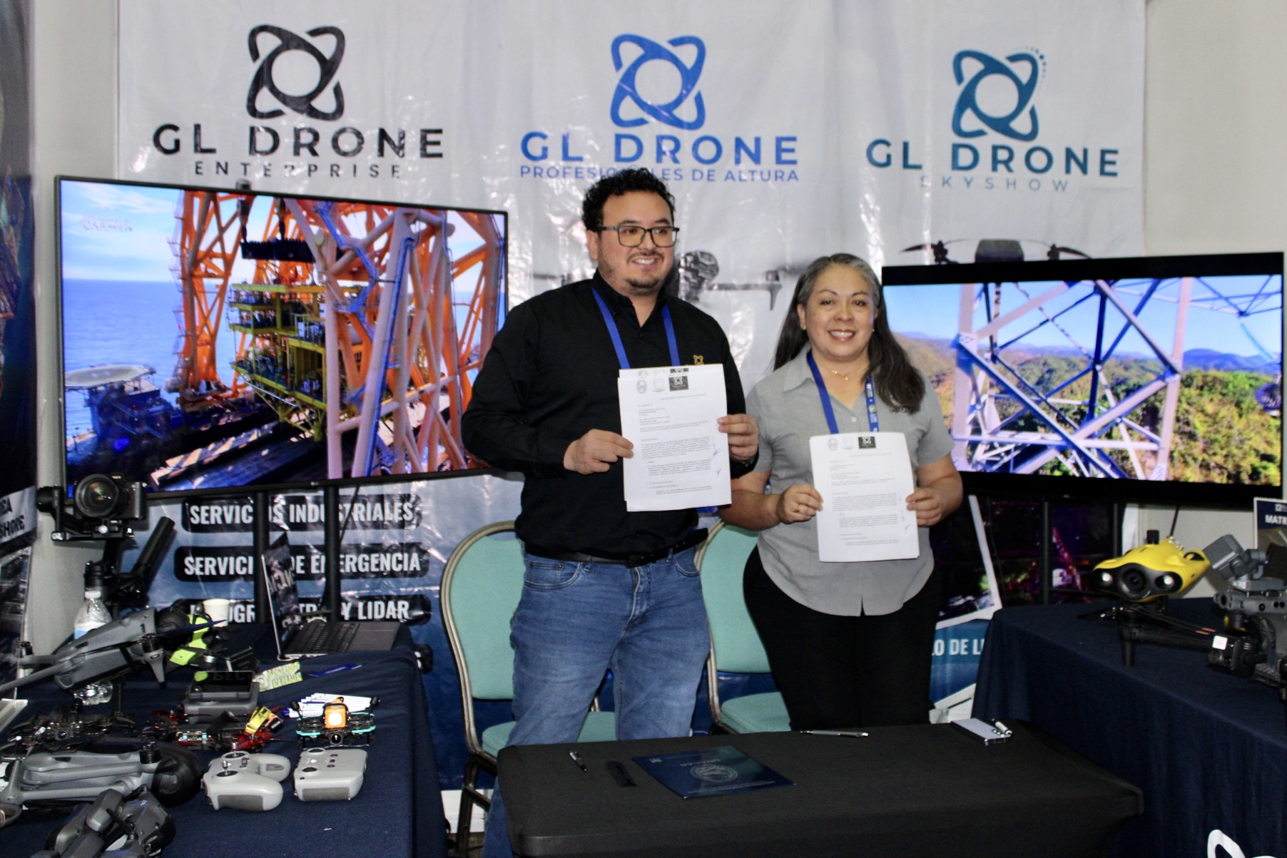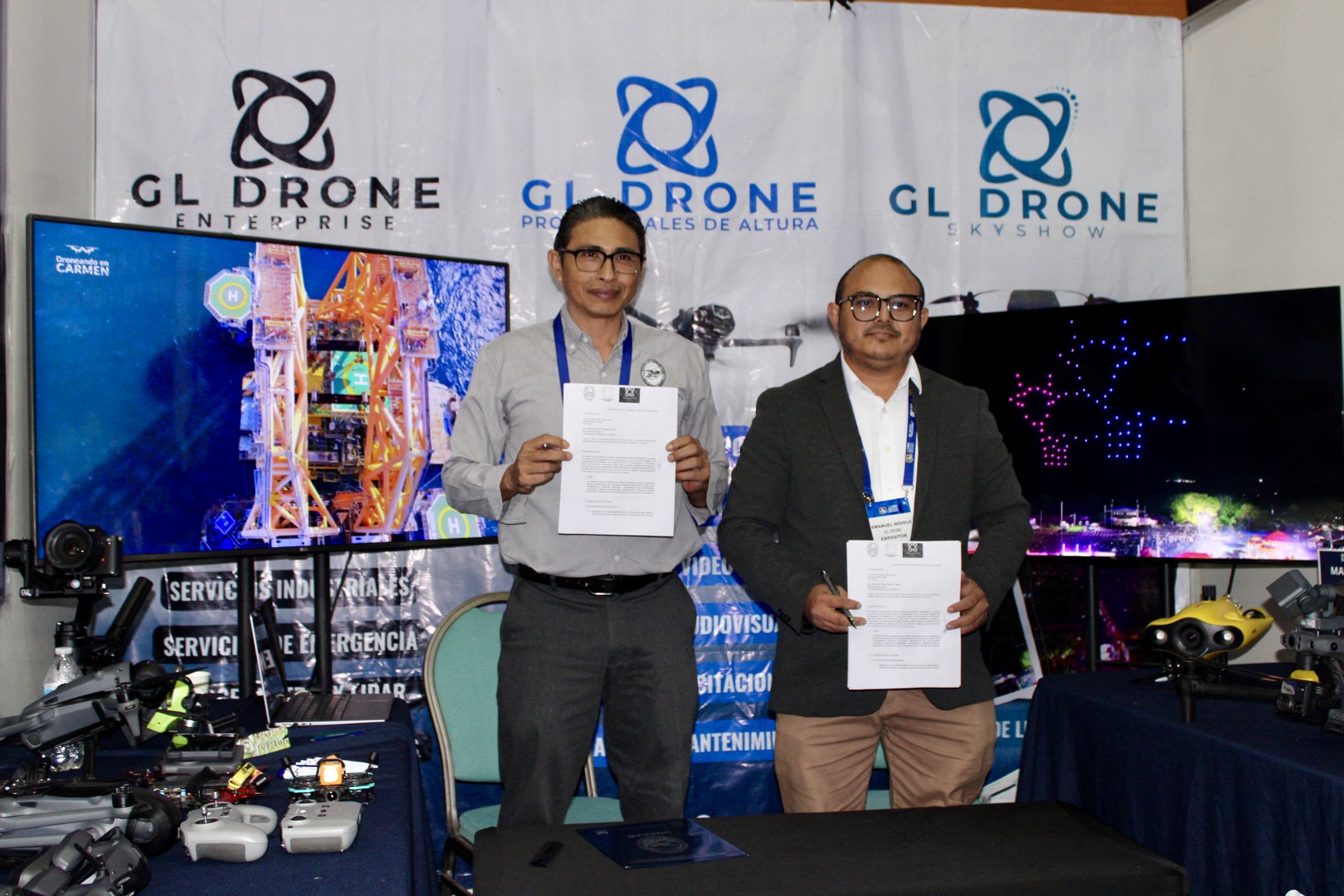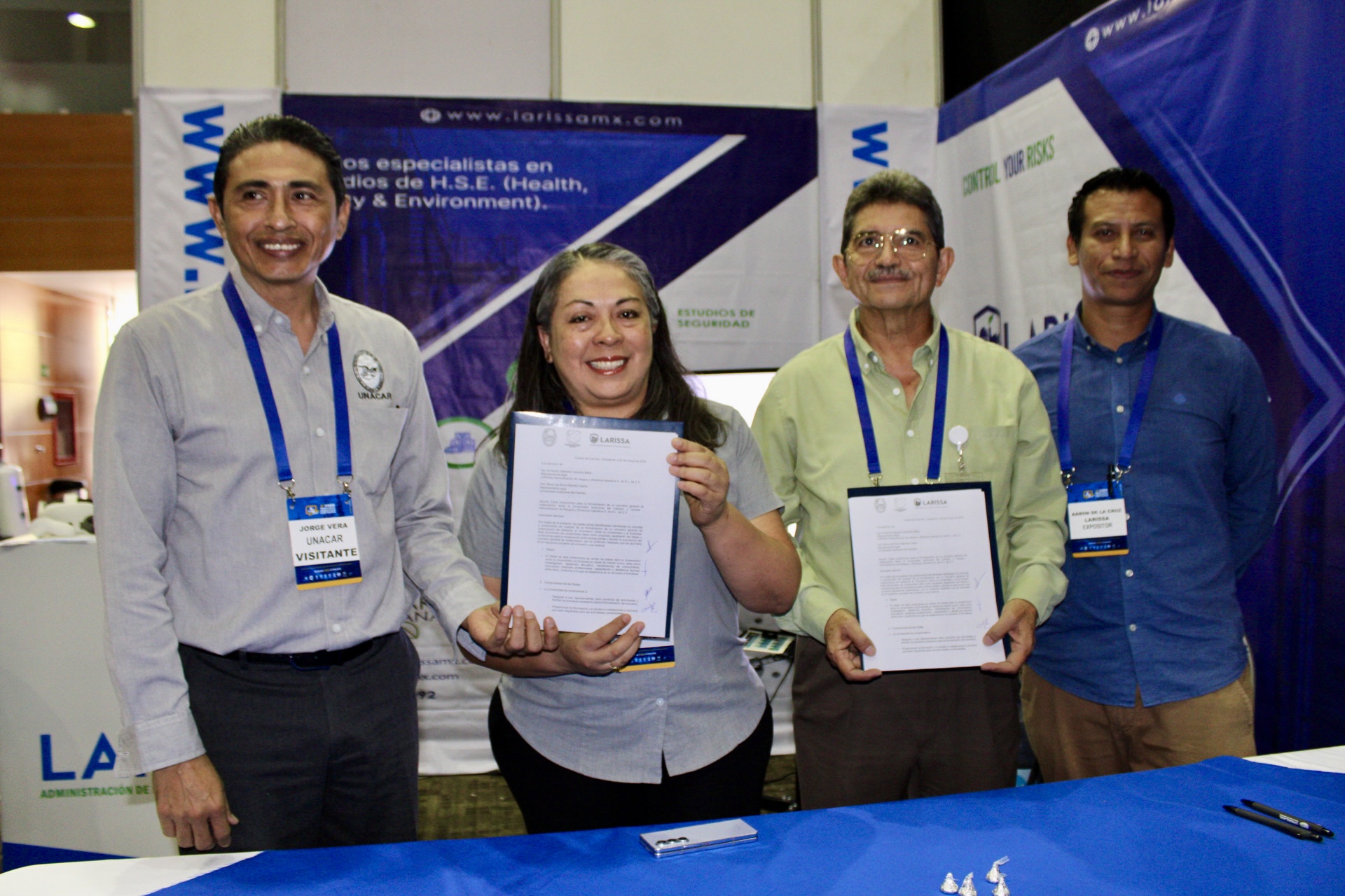 La signa llevó a cabo durante el tercer Foro Industrial Energético Portuario por la Dra. María del Rocío Barreto Castro, secretaria administrativa; y el Mtro. Jorge Antonio Vera Martínez, coordinador general de Vinculación; por parte de la UNACAR; y de los representantes de cada empresa: Ing. Amado V. Astudillo Abundes y Lic. Aarón De la Cruz Vidal, de LARISSA; y Lic. Gerardo Lugo y Lic. Jesús Emmanuel Novelo, de GL Drone.