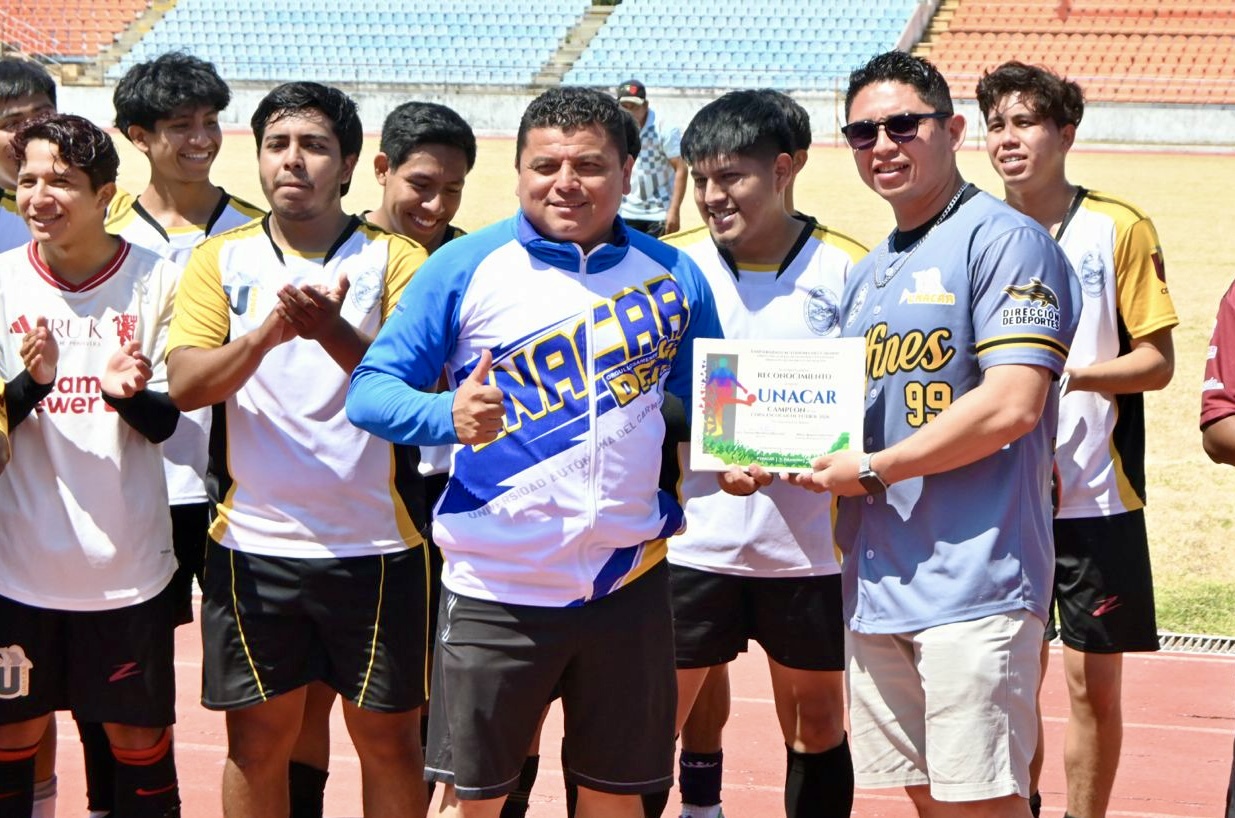 La Universidad Autónoma del Carmen (UNACAR) se proclamó campeona estatal de la Copa Escolar de Educación Superior 2026 en la rama varonil de fútbol al vencer por marcador de 3-0 a la Universidad Tecnológica de Campeche (UTCam) en la gran final disputada este sábado.