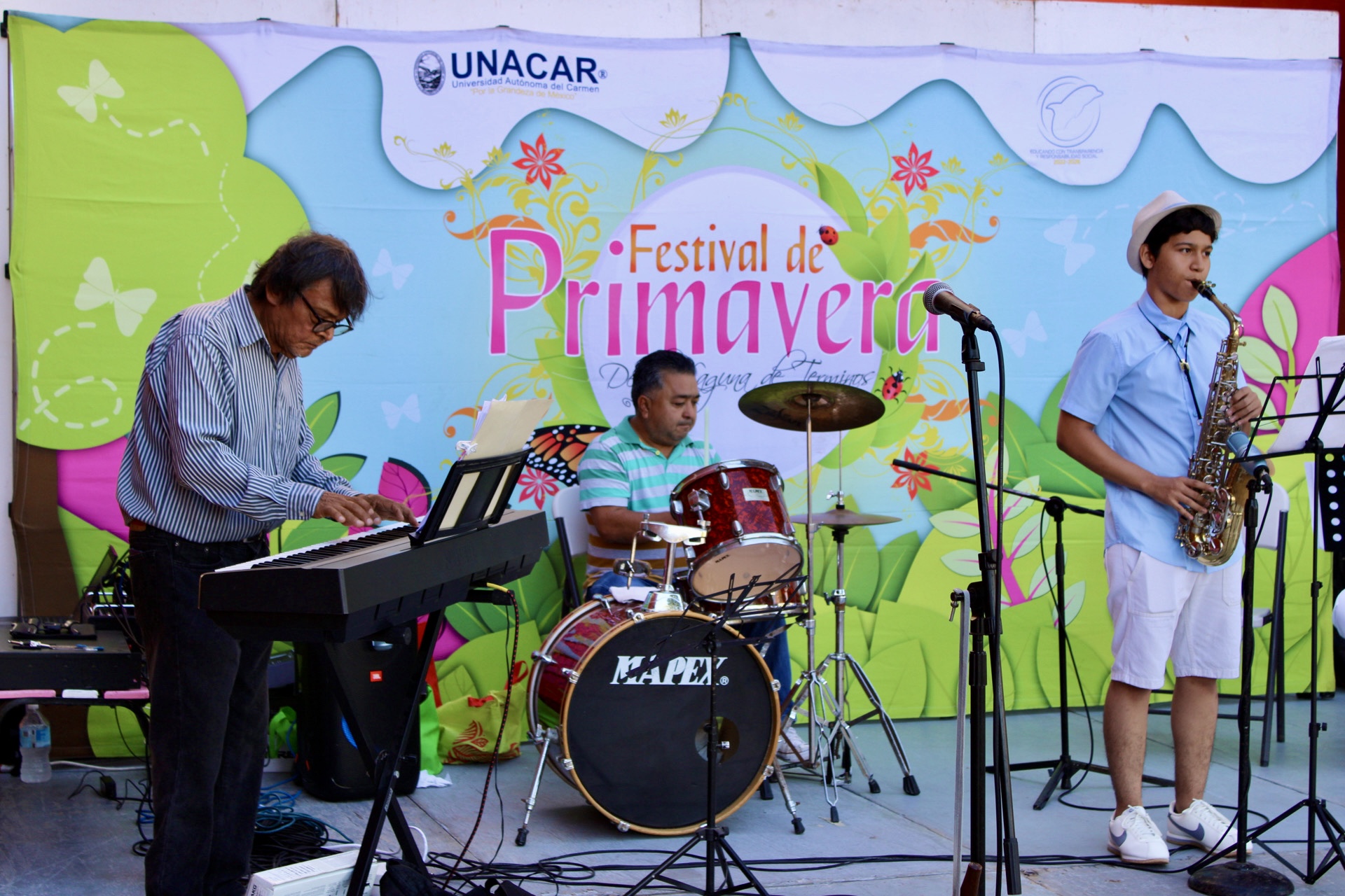 Durante el segundo día del XXI Festival de Primavera de la Laguna de Términos "Los Sonámbulos del Entorno del Museo Victoriano Névez Céspedes”, propuesta artística nacida de la participación ciudadana y el impulso cultural realizaron su presentación en la explanada del monumento a Justo Sierra Méndez en el Campus Principal "José Ortiz Ávila" de la Universidad Autónoma del Carmen (UNACAR).