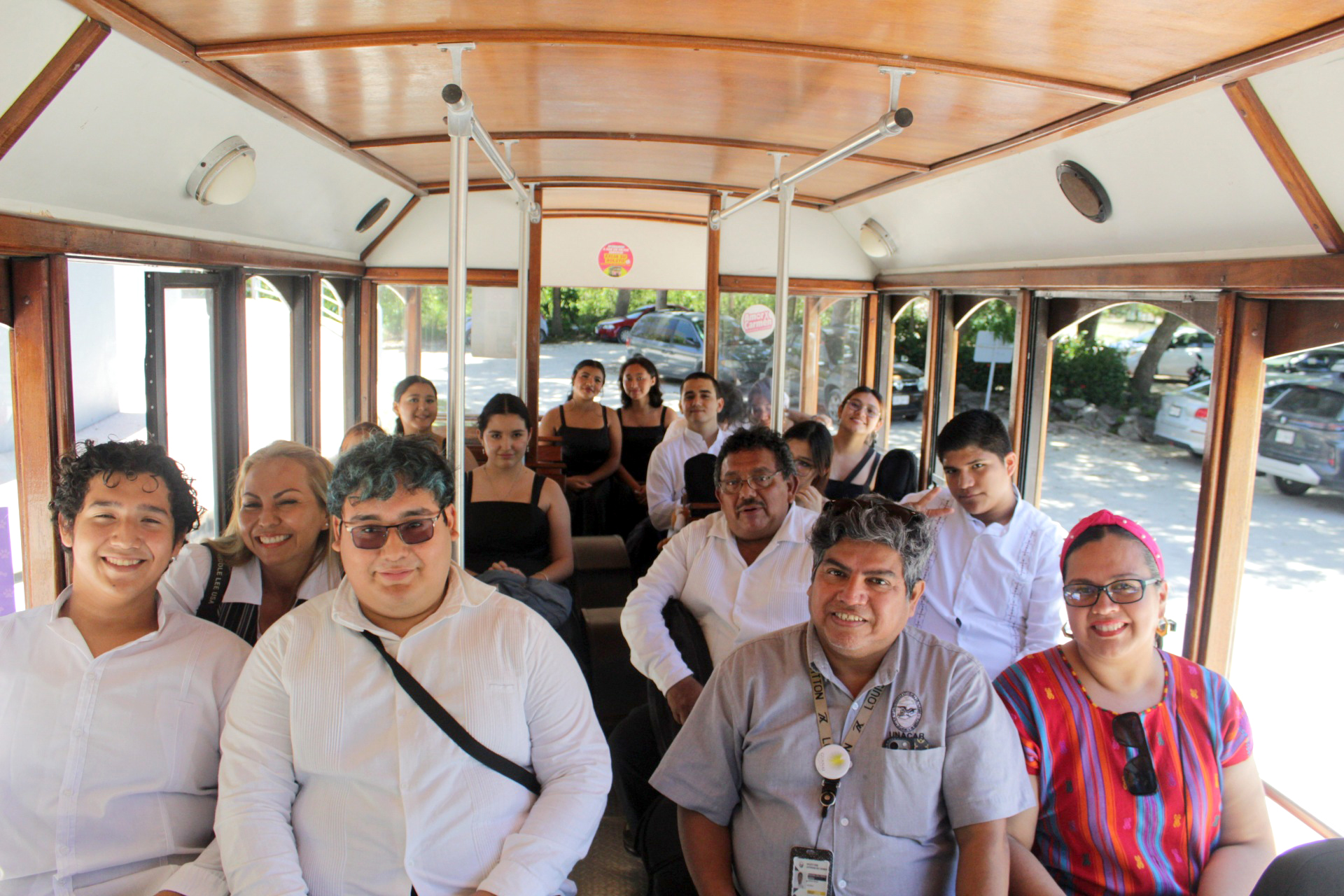 Los integrantes de la Rondalla regresaron al Campus II a bordo del Tranvía Turístico "Amor X Carmen", proporcionado por la Dirección de Turismo y Desarrollo Económico municipal.