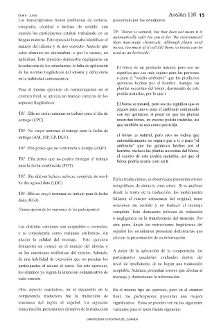 participantes al iniciar el curso. En este ejercicio, nivel de insuficiente, al no lograr una traducción