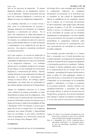 más en los ejercicios de traducción. El alumno del Google Drive como estrategia para desarrollar