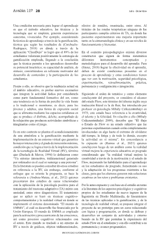por ordenador en el cual se sumerge a una persona”. Flow, mejorando las habilidades para el aprendizaje