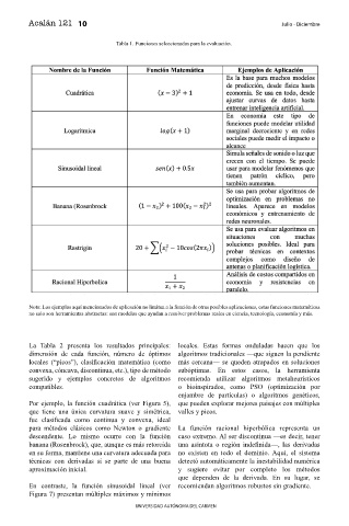 Tabla 1. Funciones seleccionadas para la evaluación.