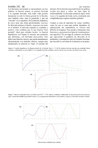 Figura 7. Función Sinusoidal lineal: (a) Gráf ca de , función continua y multimodal. (b) Su primera derivada cambia de