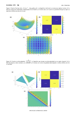 Figura 9. Función Rastrigin: : (a) Superf cie multimodal con numerosos óptimos locales. (b) La