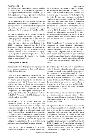 (2018) prepararon nanopartículas de ZnO dopadas para la síntesis industrial a gran escala.