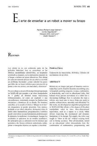 sencillos, se le enseñó al robot a “dibujar en el aire” this work, we developed an algorithm programmed