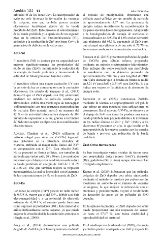 prohibida del ZnO. Esto provoca el estrechamiento los pares electrón-hueco fotogenerados. Al aplicarlo
