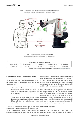 Tabla 1. Ángulos de trabajo de las articulaciones del