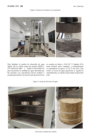 las muestras. Los especímenes fueron medidos y masa húmeda y se calculó el porcentaje de absorción